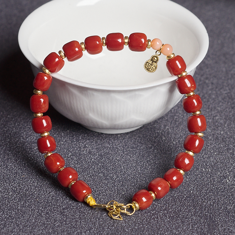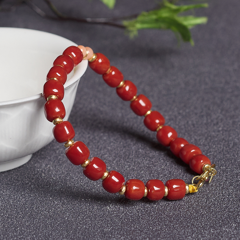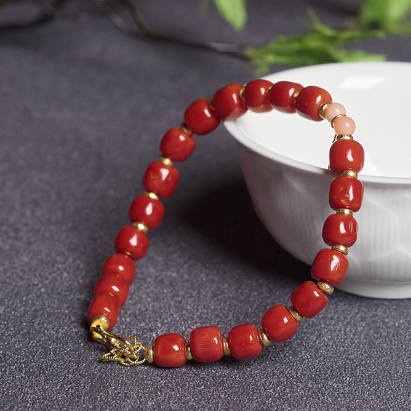 • 沙丁牛血红珊瑚桶珠手链