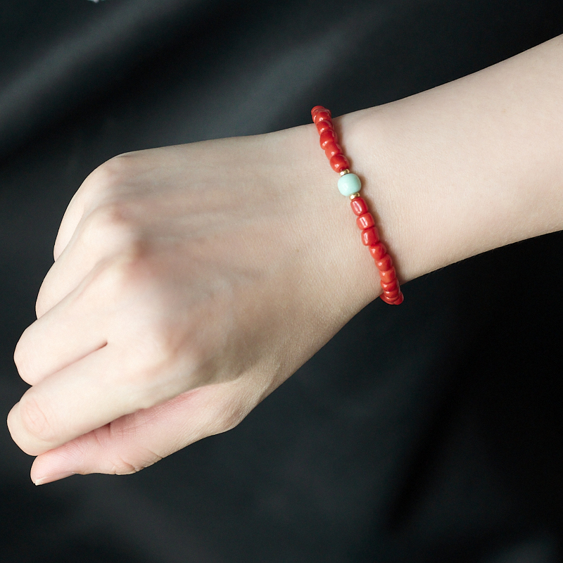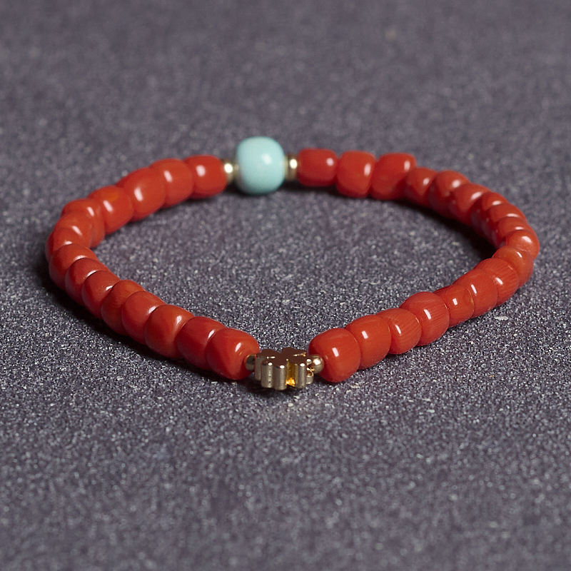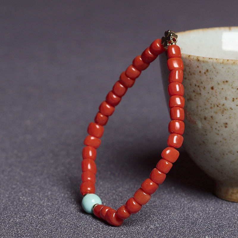 • 沙丁珊瑚桶珠单圈手串