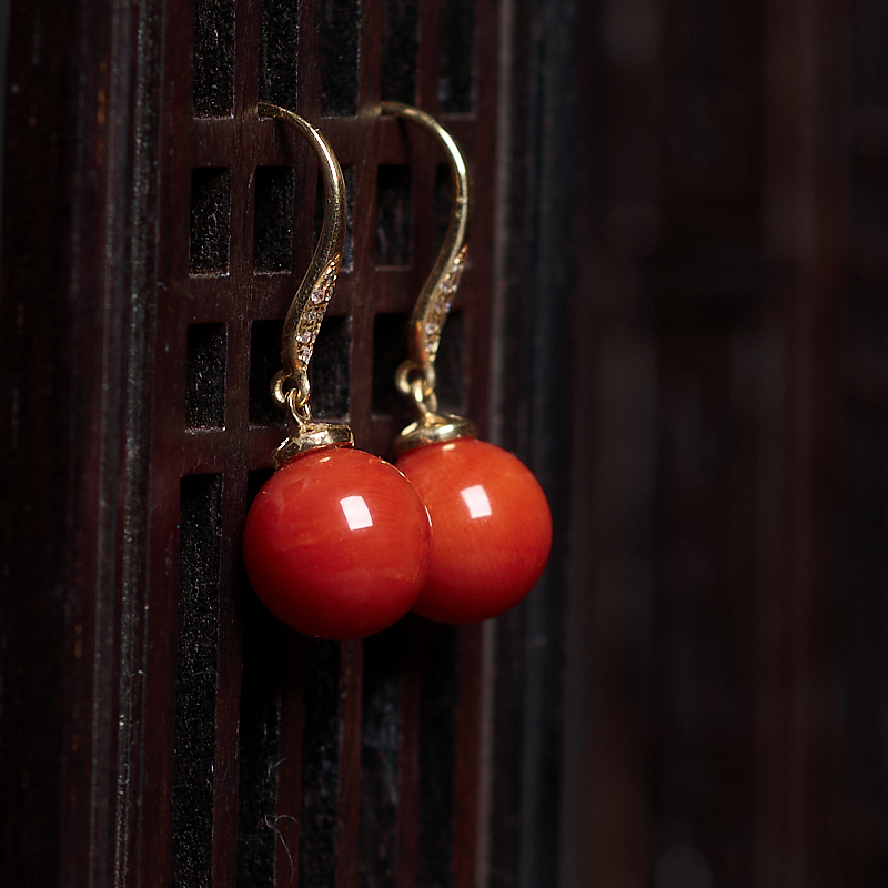 • [名  称] 18K沙丁珊瑚圆珠耳环