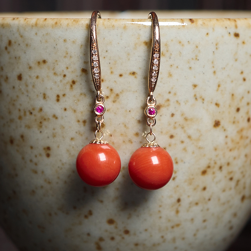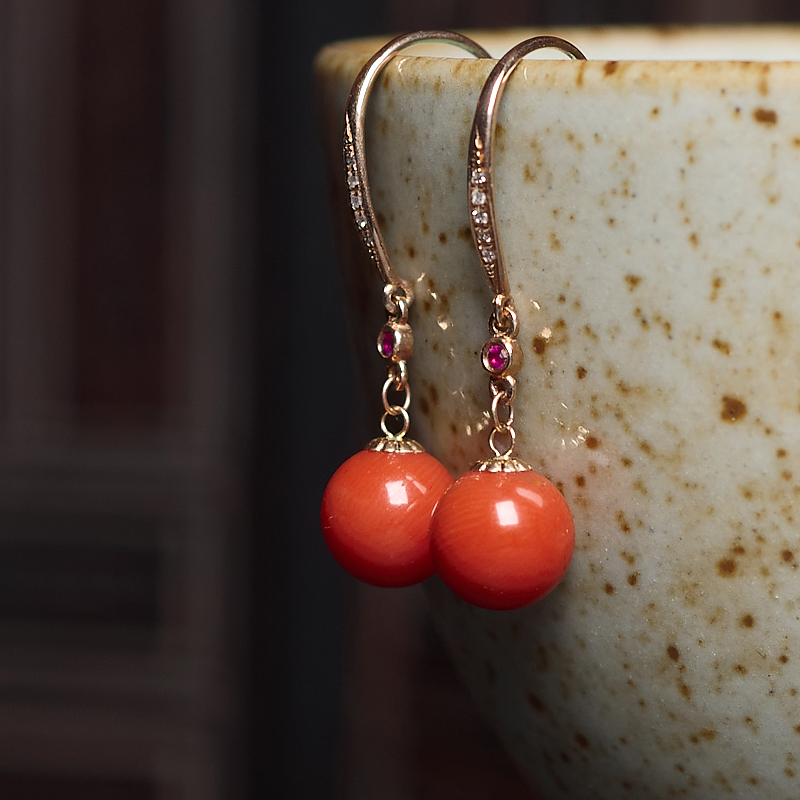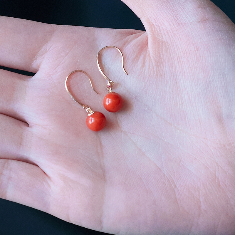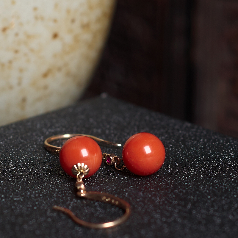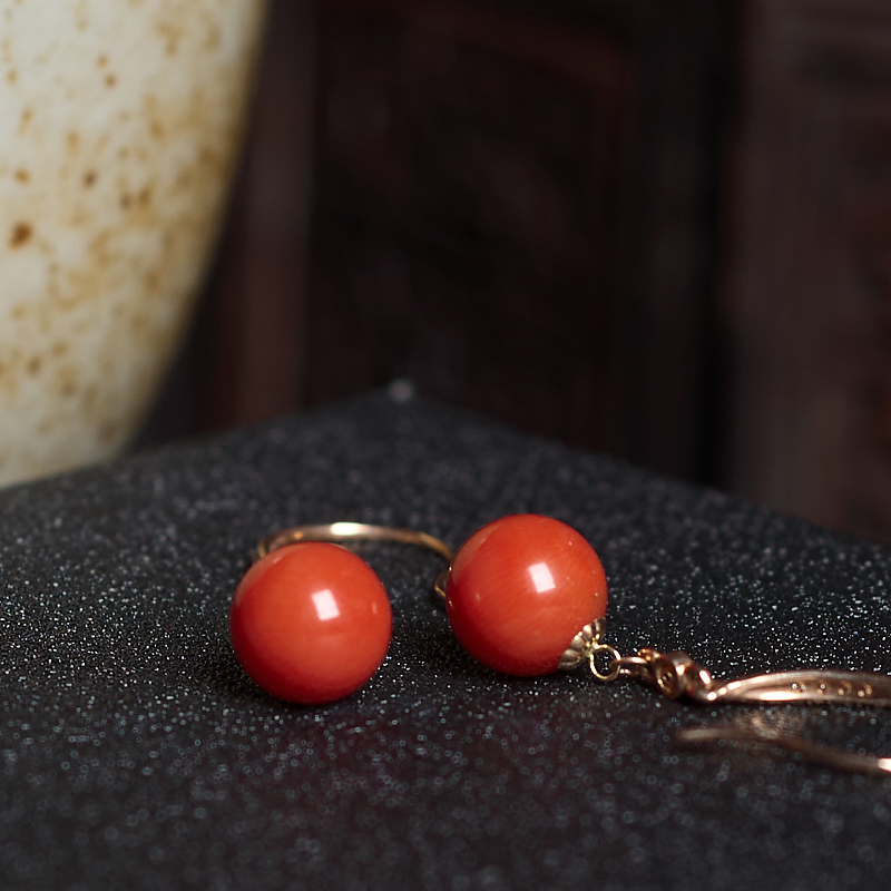 • [名  称] 18K沙丁珊瑚圆珠耳环