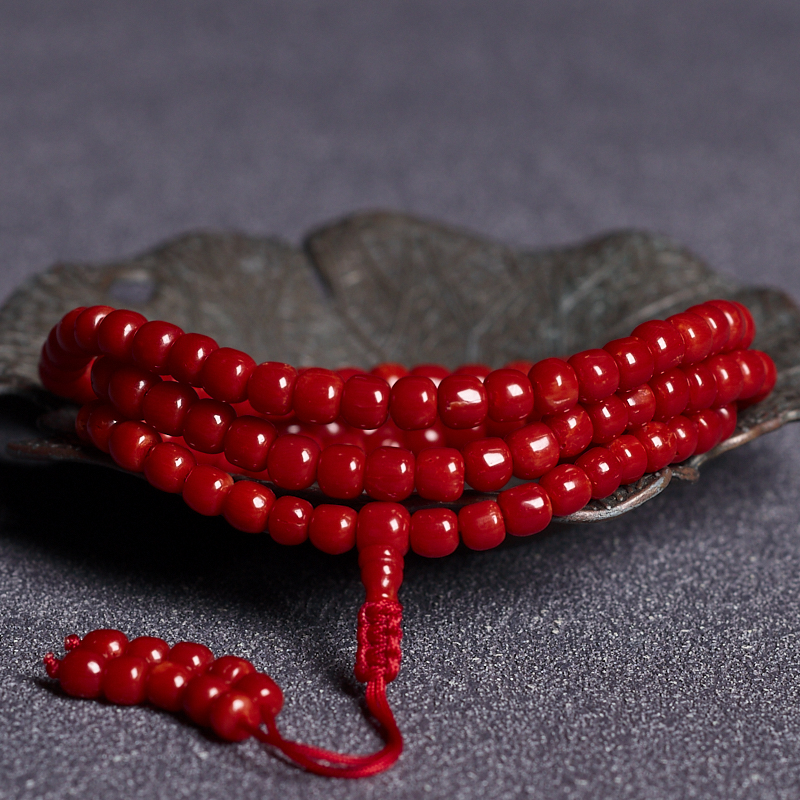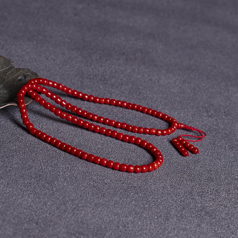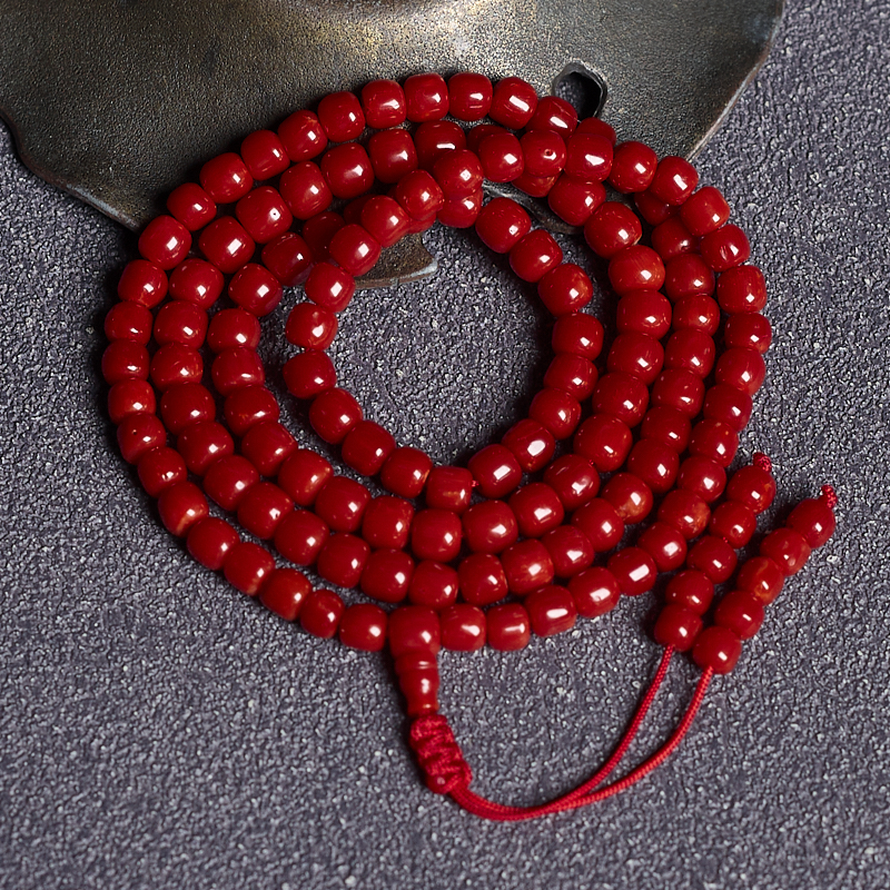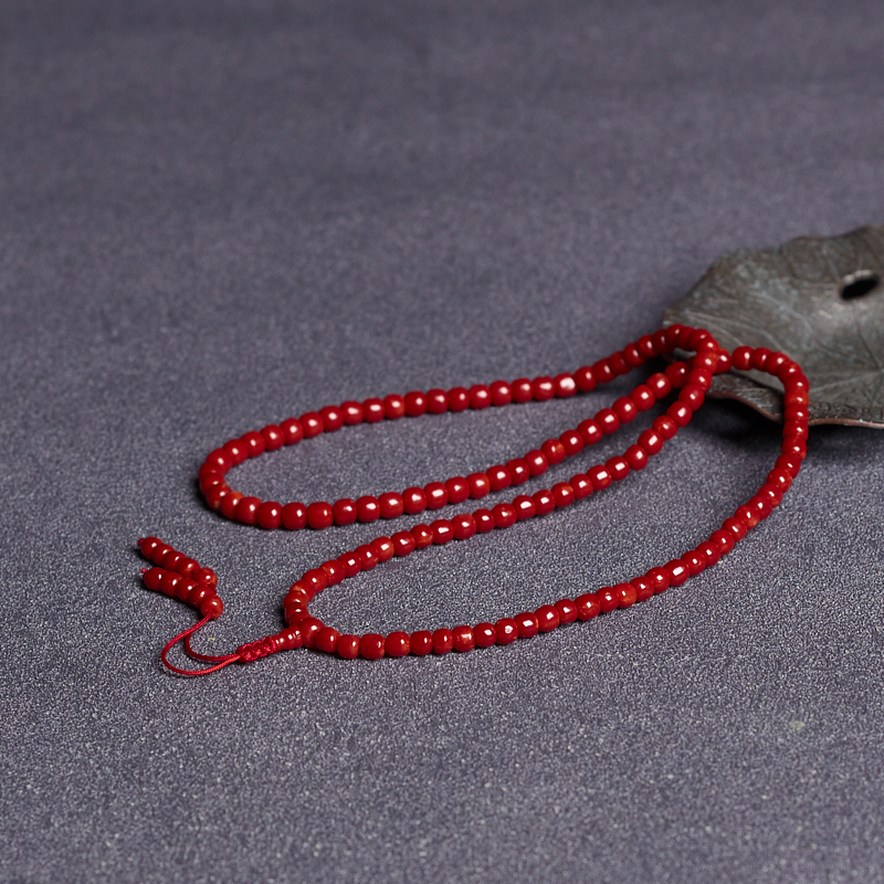 • 沙丁牛血红珊瑚桶珠多圈手串