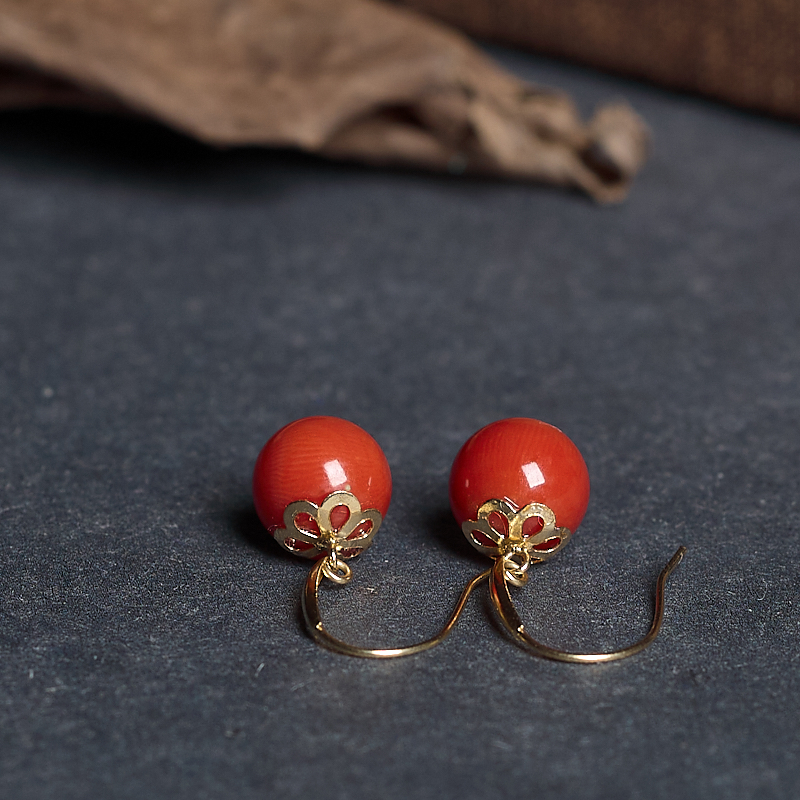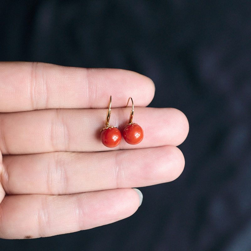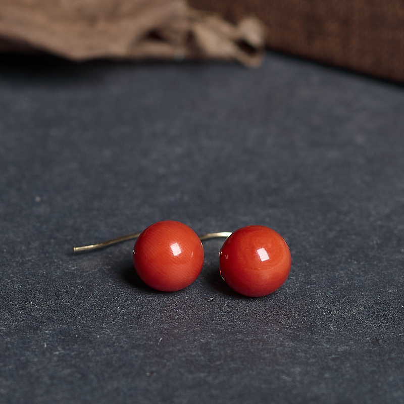 • [名  称] 18K沙丁珊瑚圆珠耳环