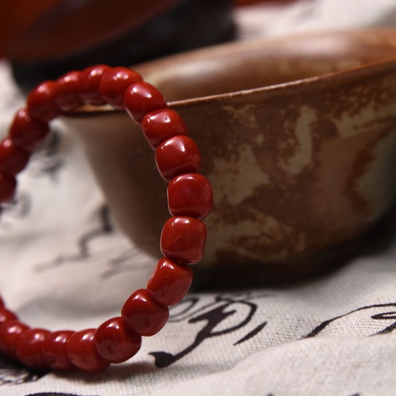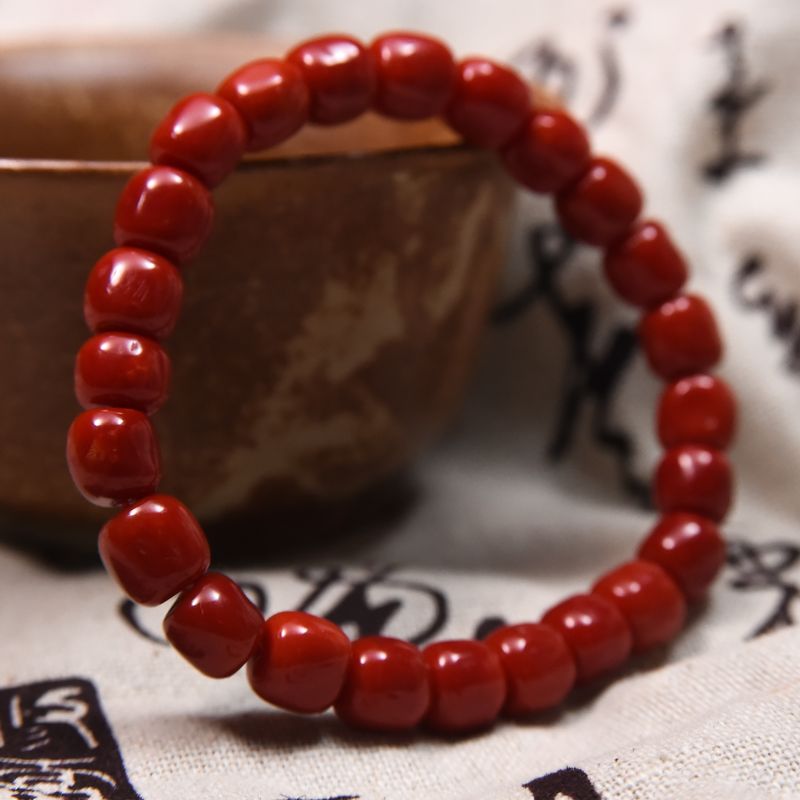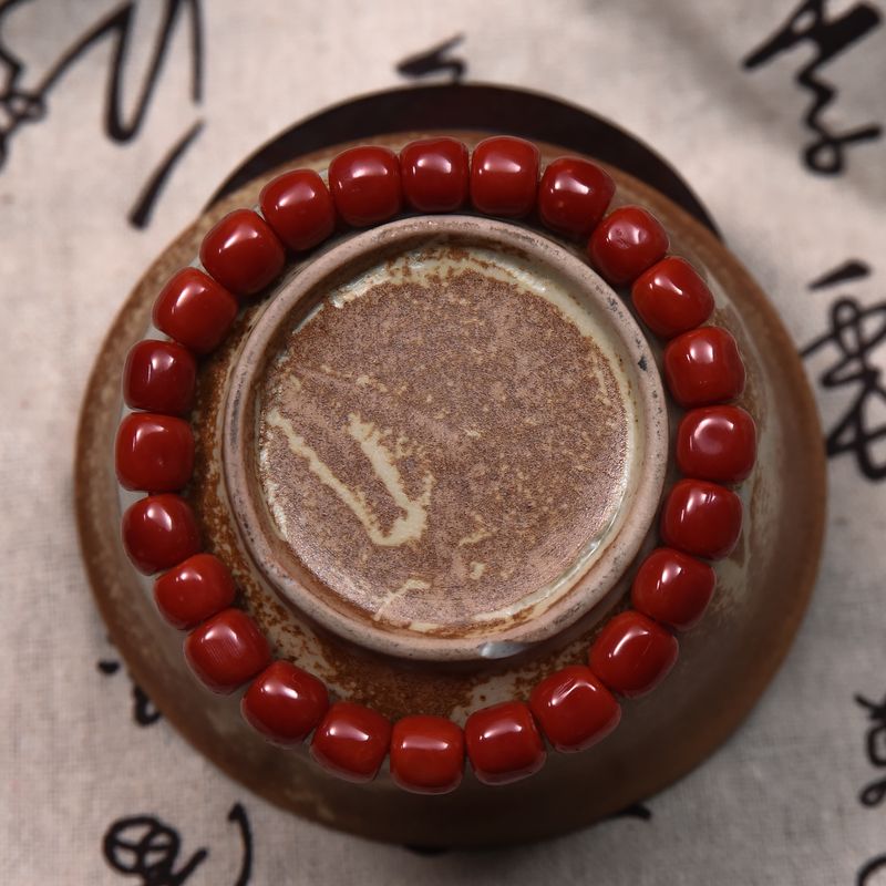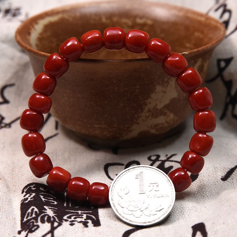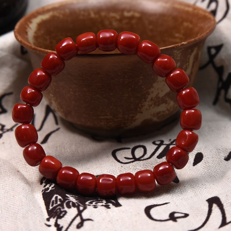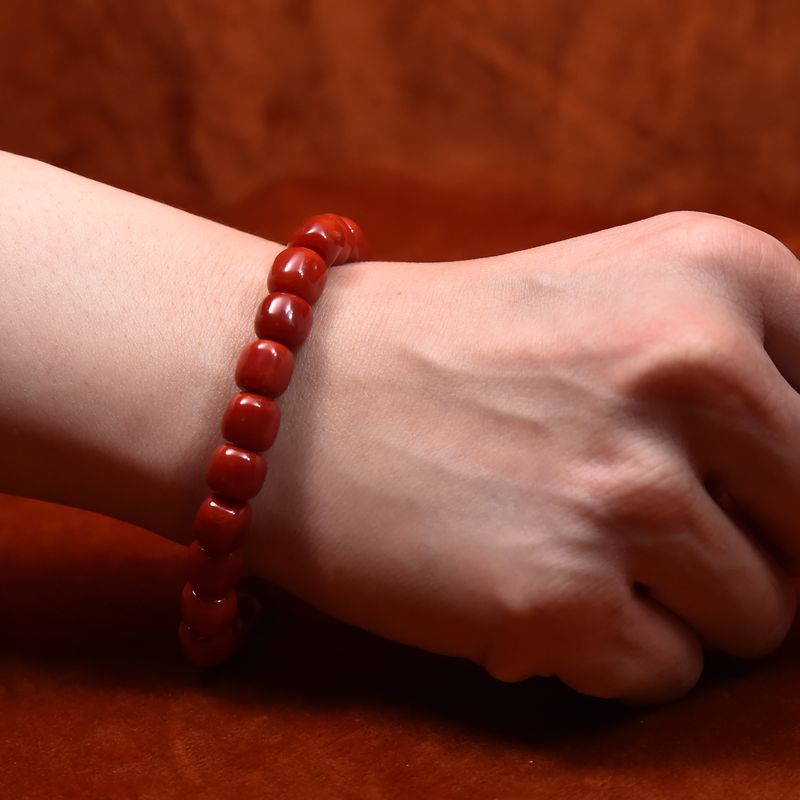 • 沙丁牛血红珊瑚桶珠单圈手串