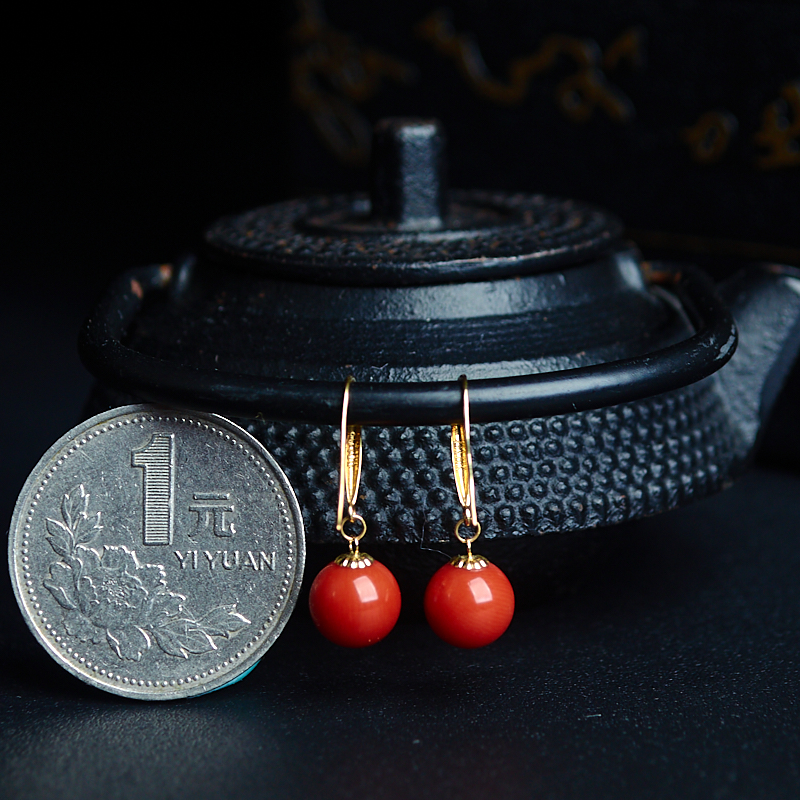 • [名  称] 18K沙丁珊瑚圆珠耳环