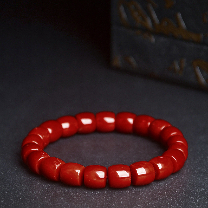 • 沙丁牛血红珊瑚桶珠单圈手串