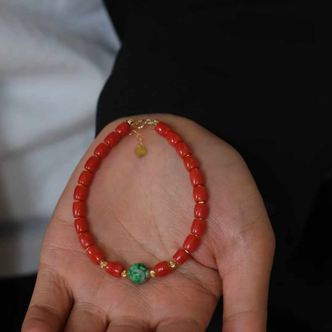 • 沙丁珊瑚桶珠手链