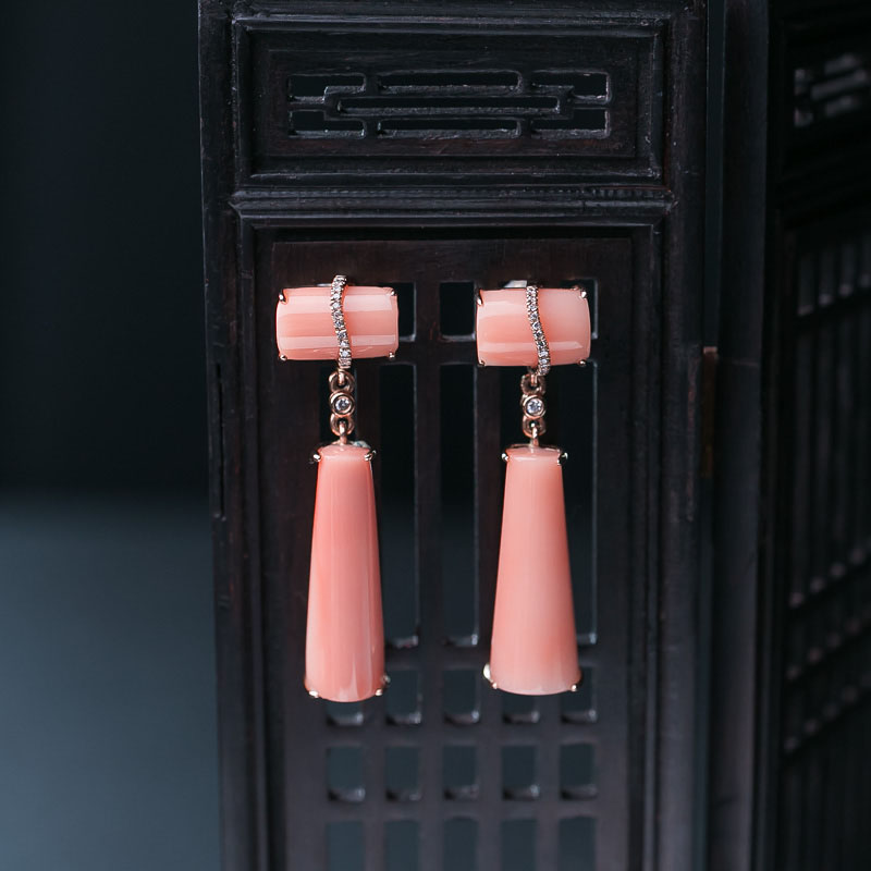• 18K深水珊瑚耳坠