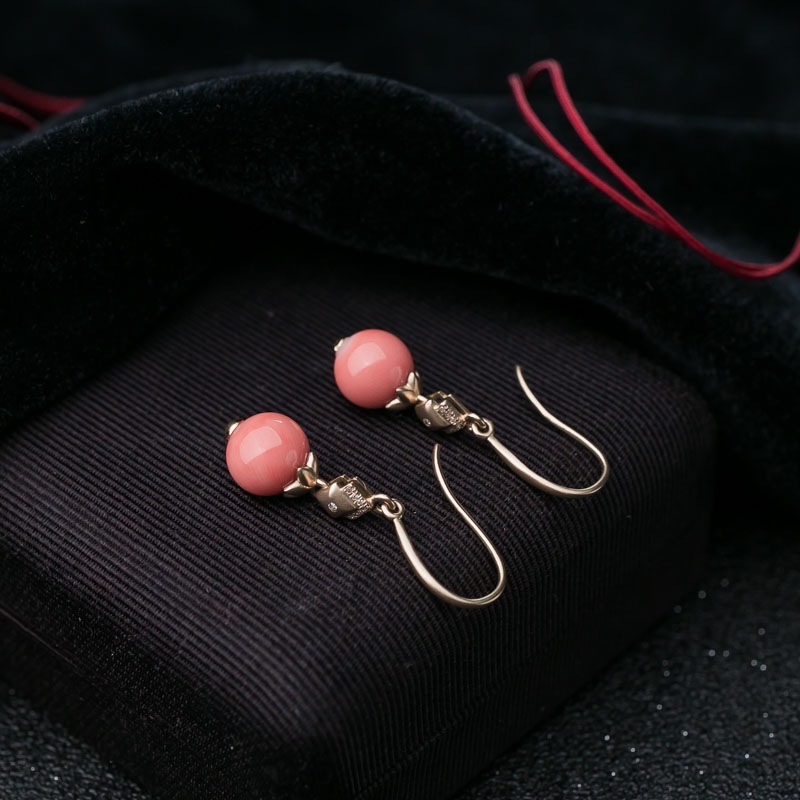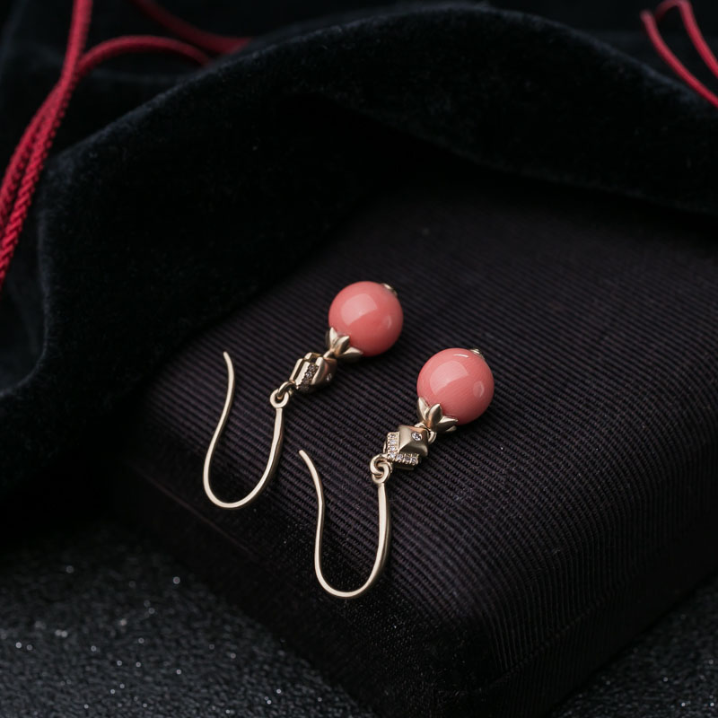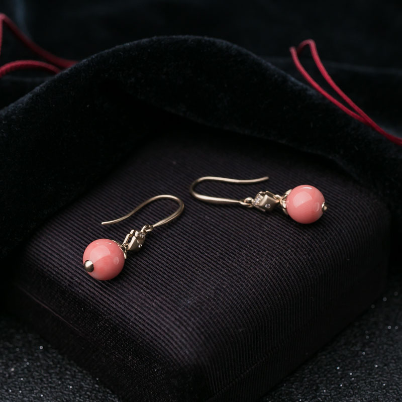 • [名  称] 18K深水珊瑚圆珠耳坠