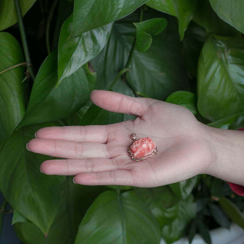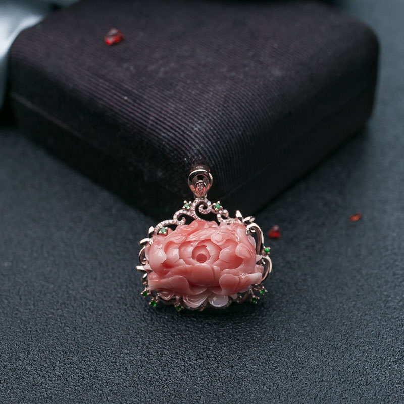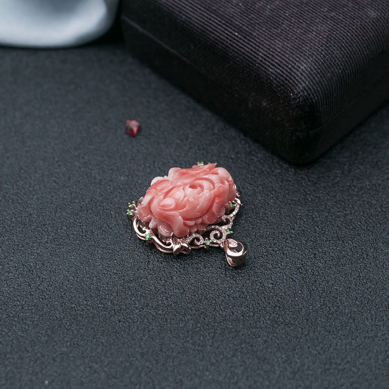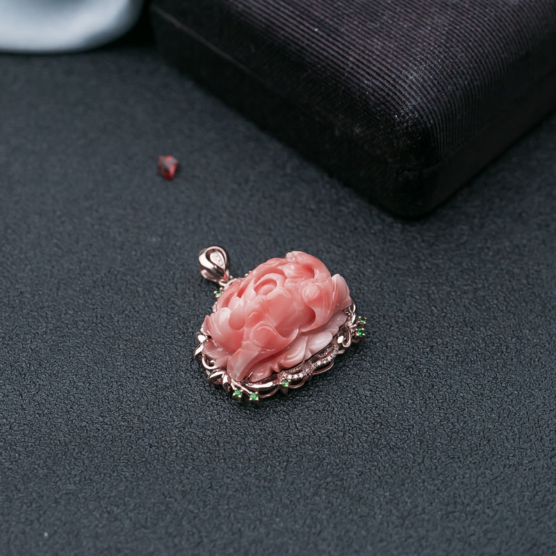 • 18K深水珊瑚牡丹花吊坠