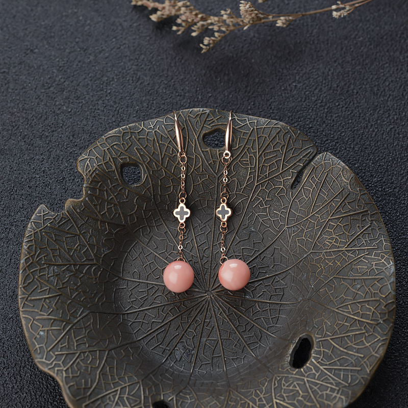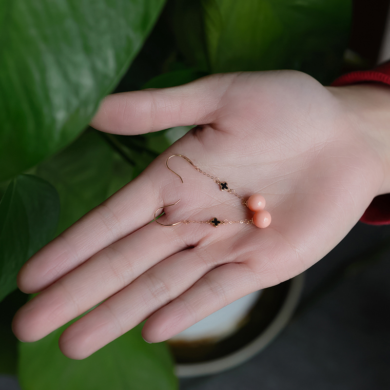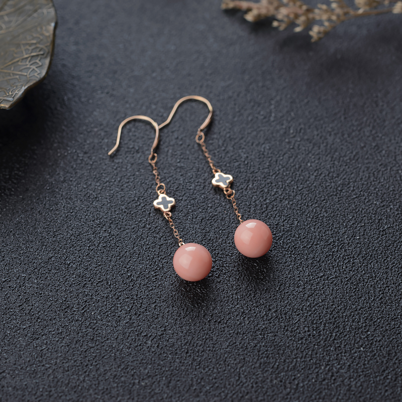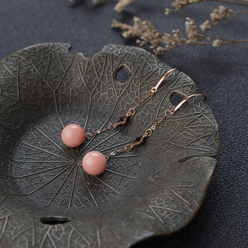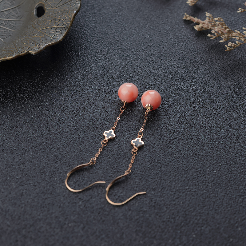 • [名  称] 18K深水珊瑚圆珠耳坠