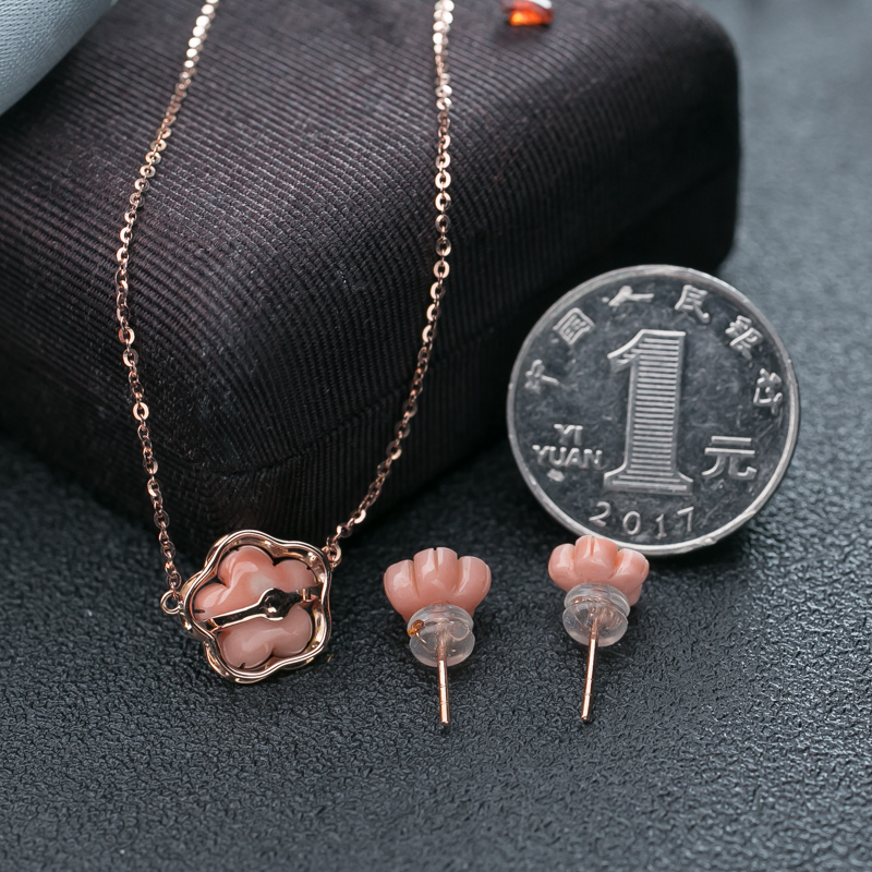 • [名  称] 18K深水珊瑚花项链/耳钉套装