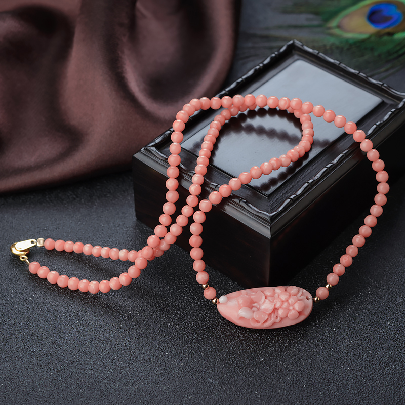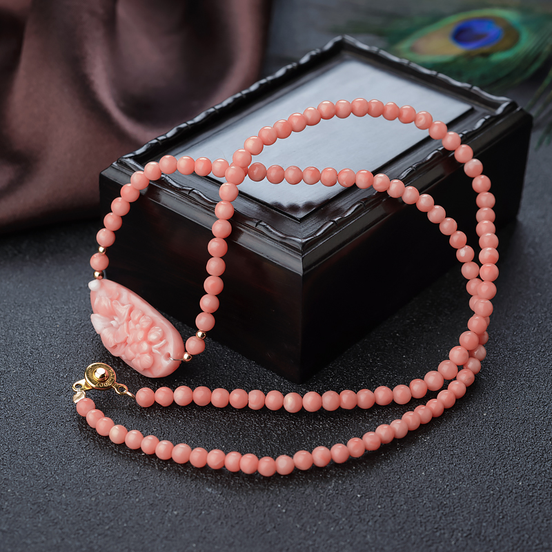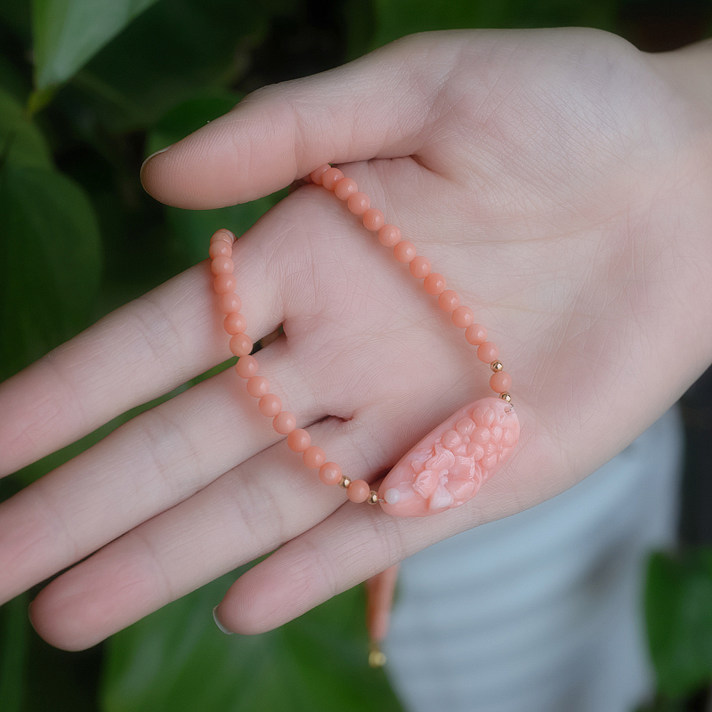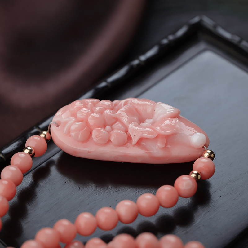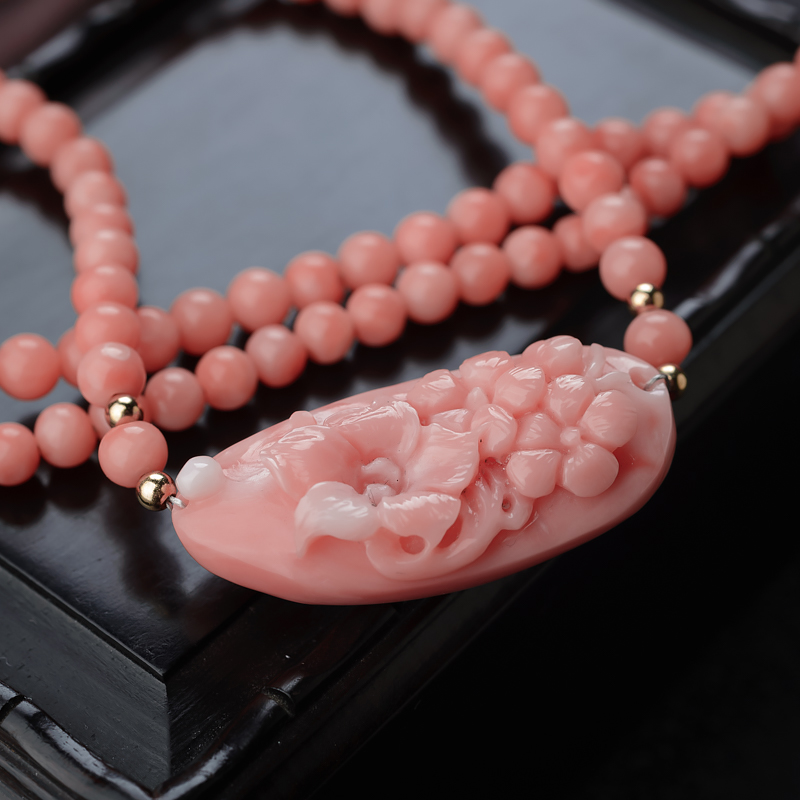 • 深水珊瑚雕花项链