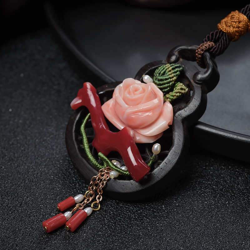 • [名  称] 深水珊瑚玫瑰花吊坠