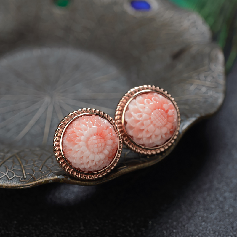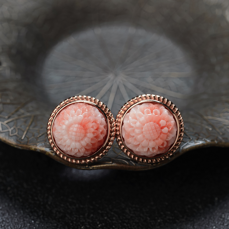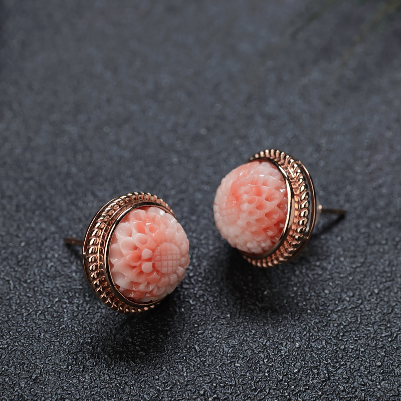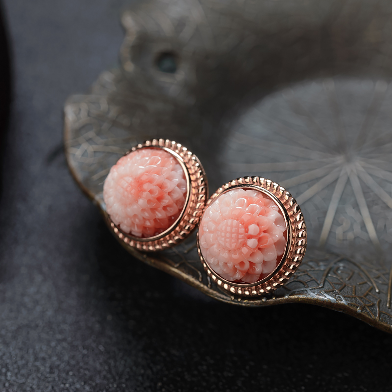 • 18K深水珊瑚雕花耳钉