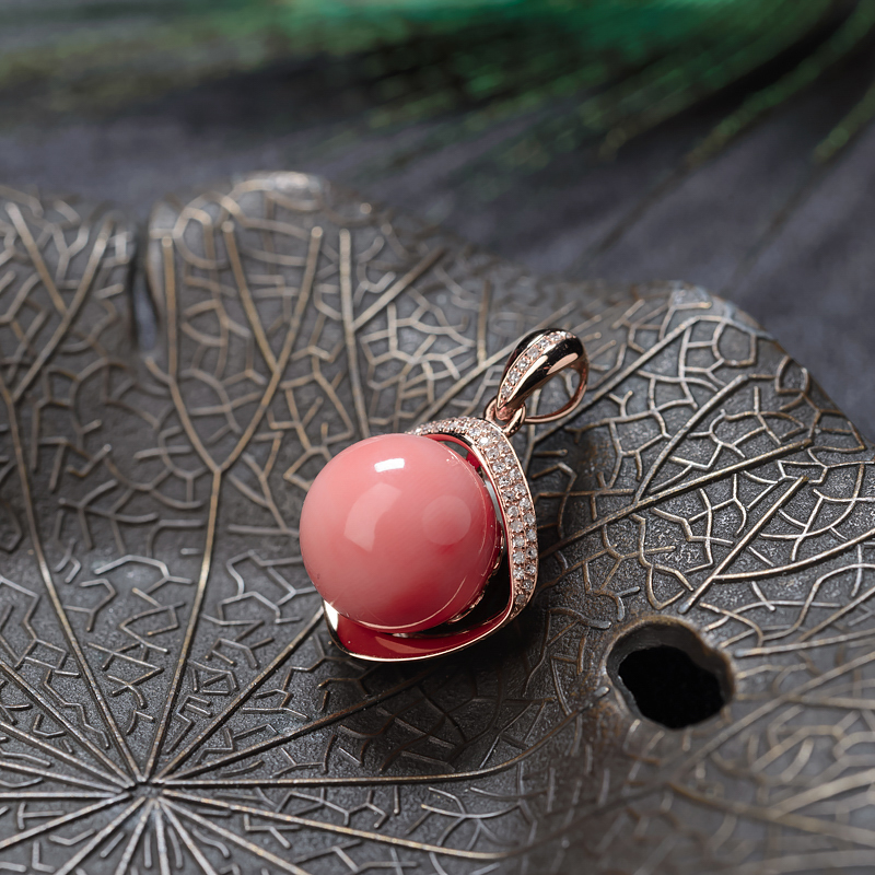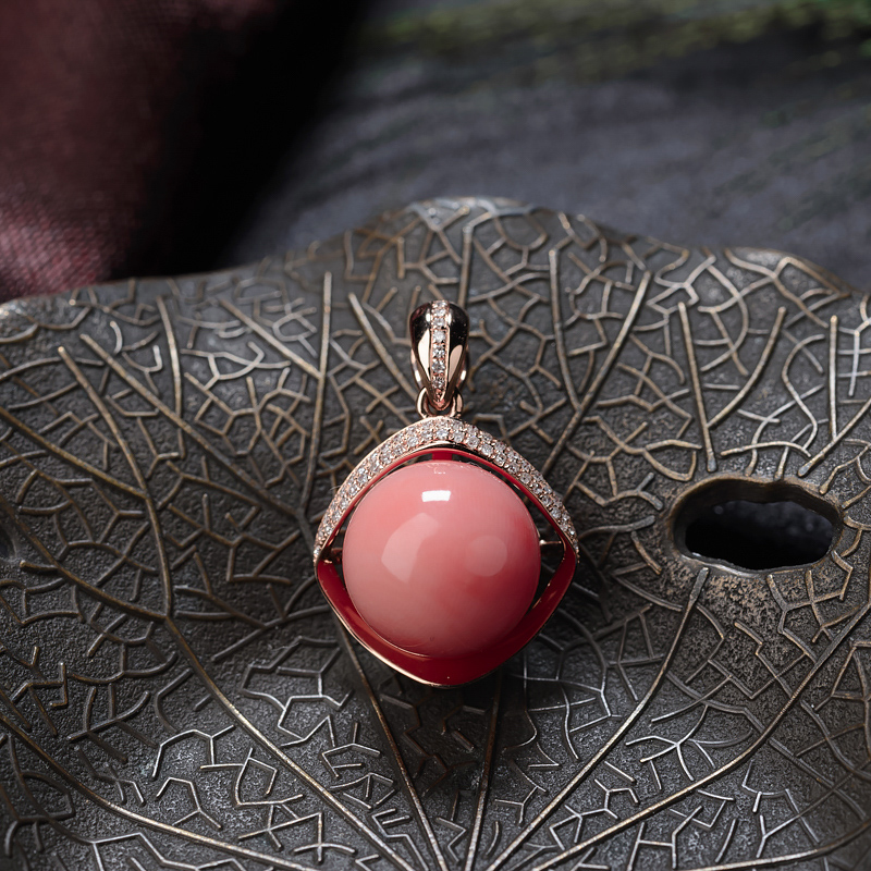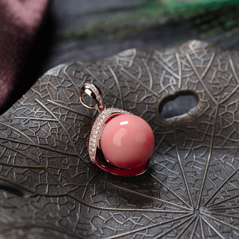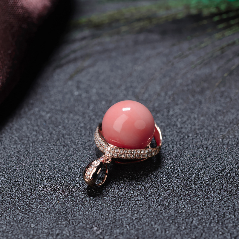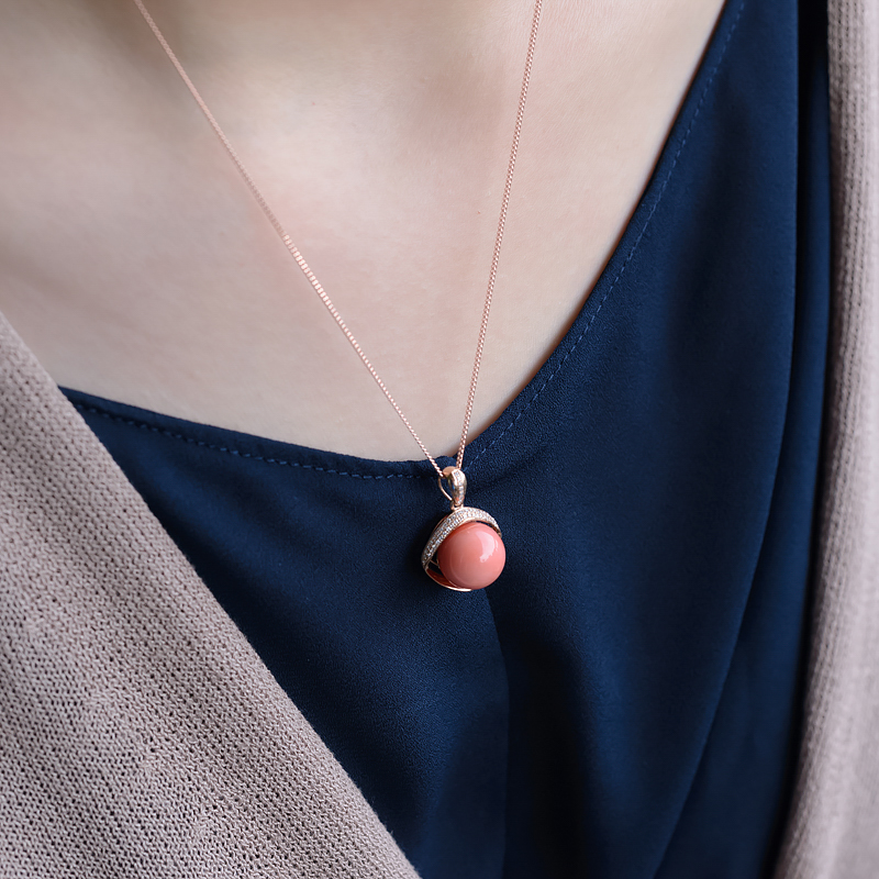 • 18K深水珊瑚圆珠吊坠