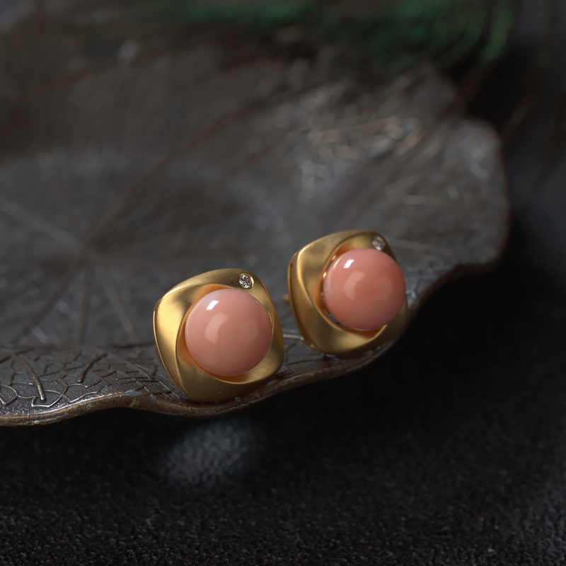 • [名  称] 18K深水珊瑚圆珠耳钉