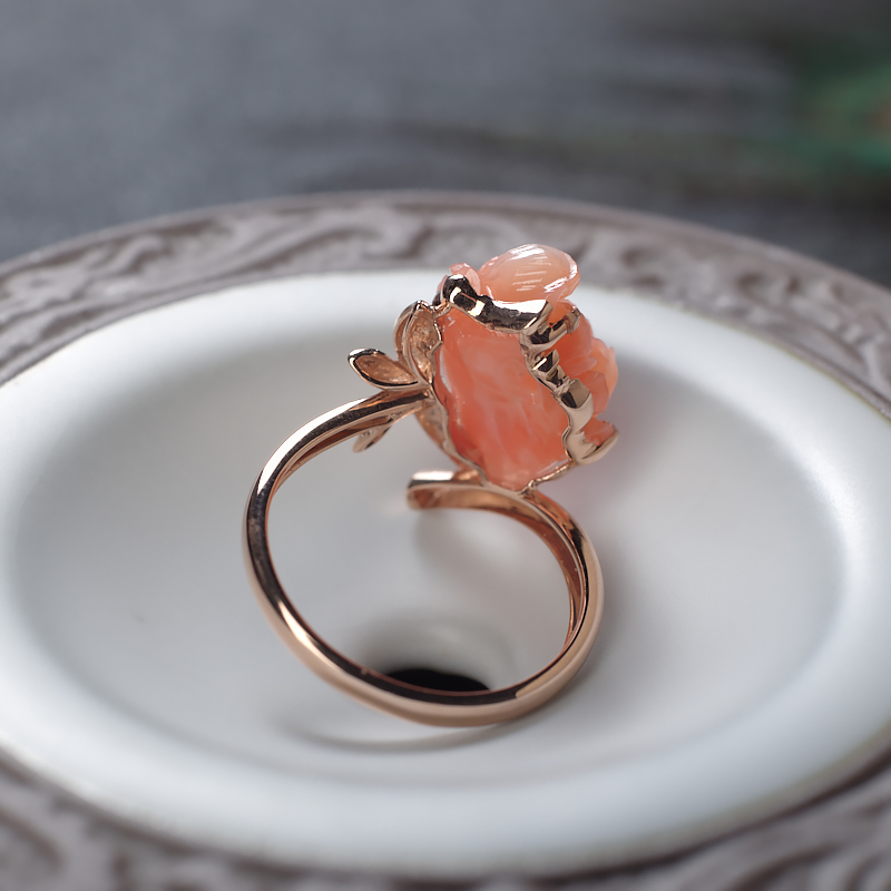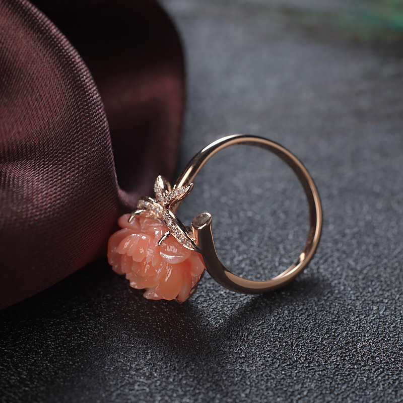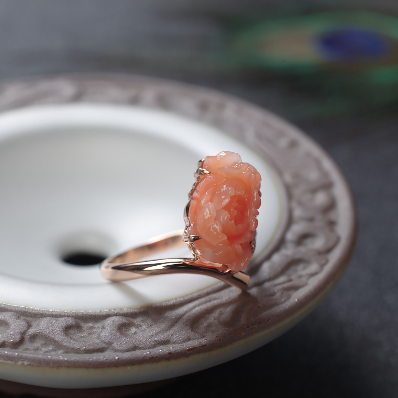 • [名  称] 18K深水珊瑚牡丹花戒指