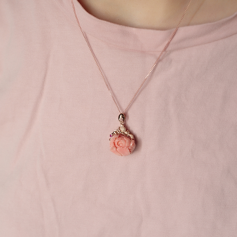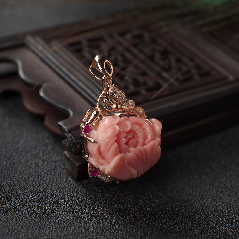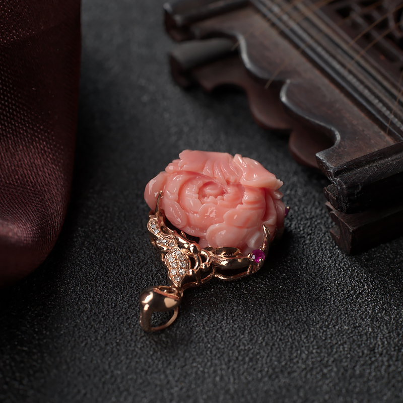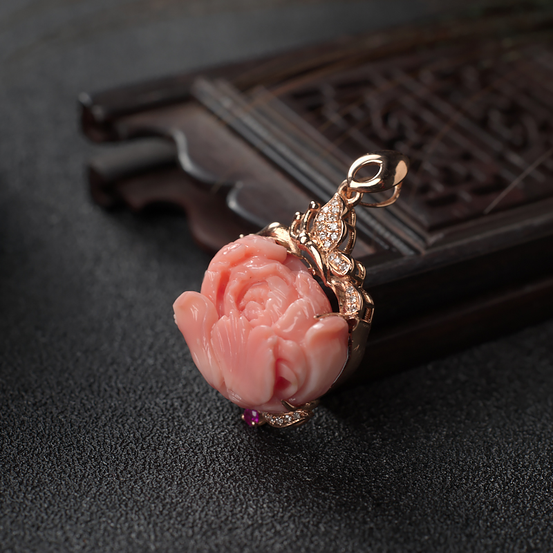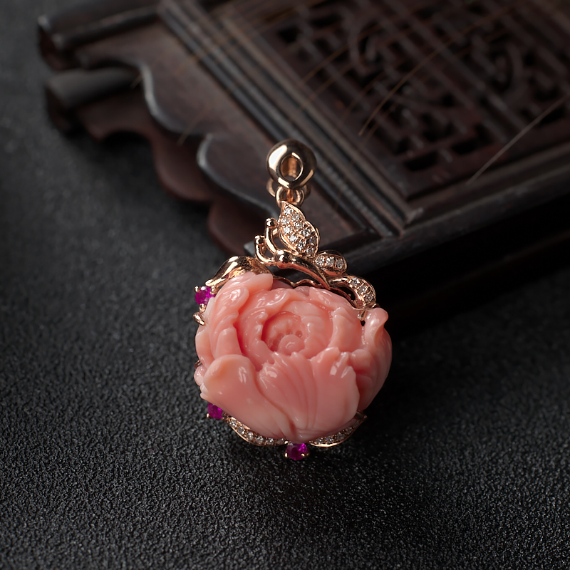• [名  称] 18K深水珊瑚牡丹花吊坠