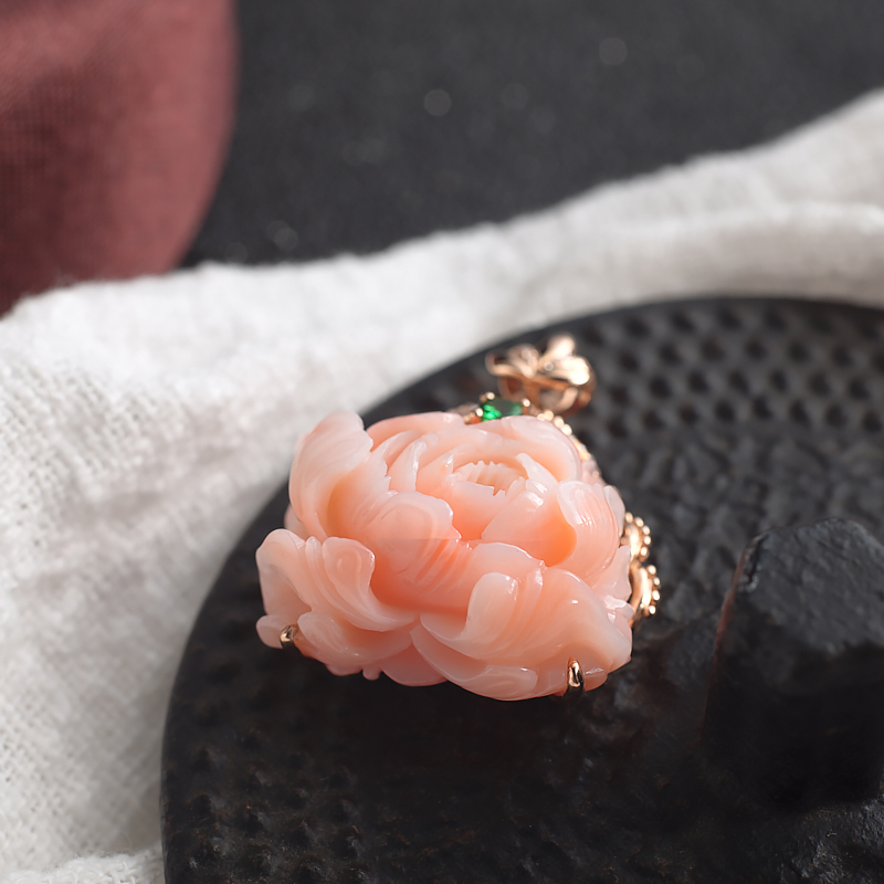 • [名  称] 18K深水珊瑚牡丹花吊坠