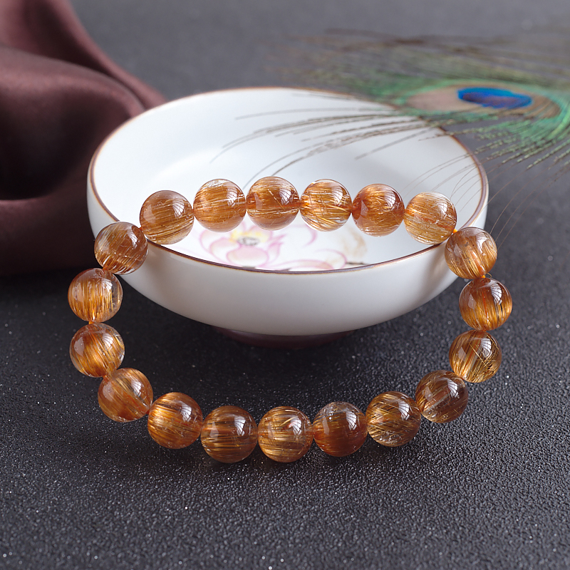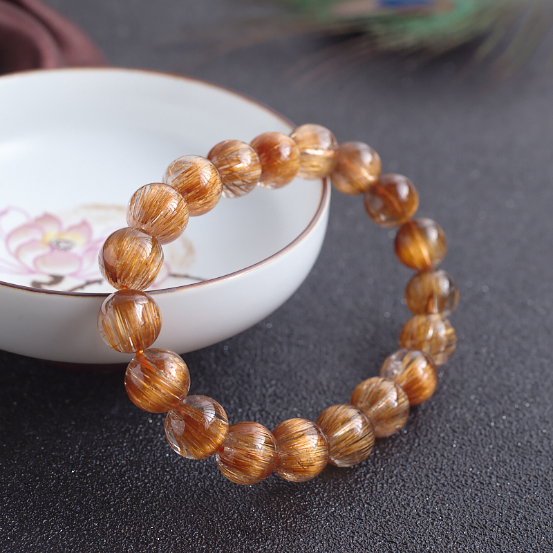 • 10mm猫眼铜发晶单圈手串