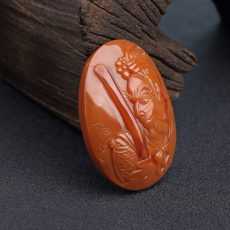 • 四川天然柿子红南红孙悟空吊坠-红掌柜