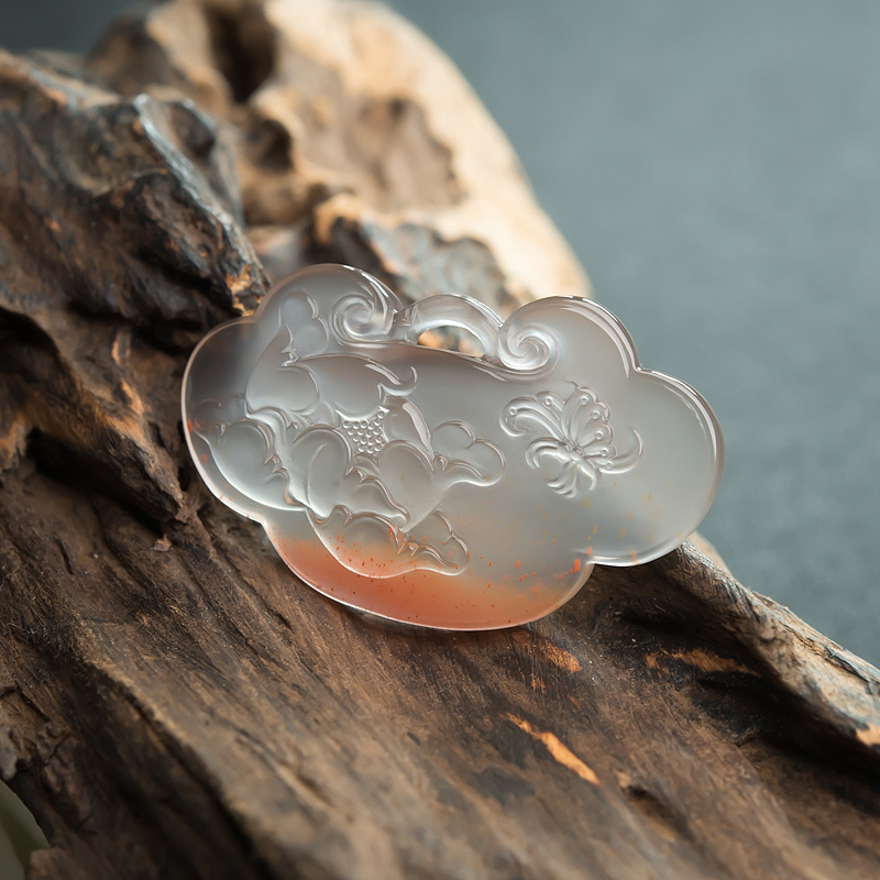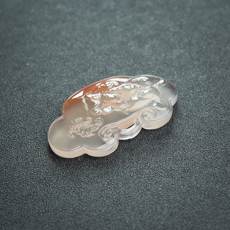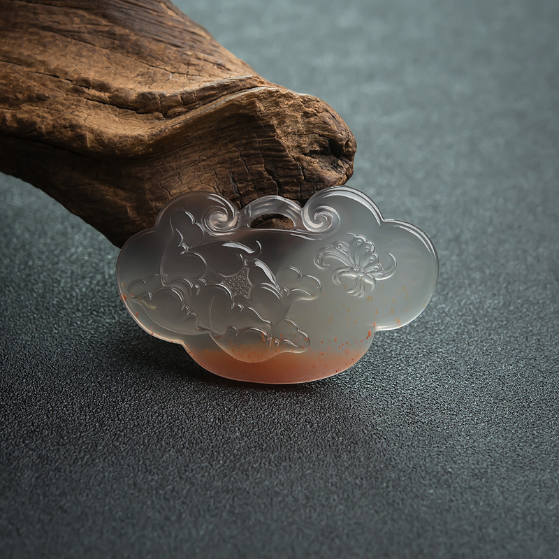 • 冰飘料南红蝶恋花如意锁吊坠