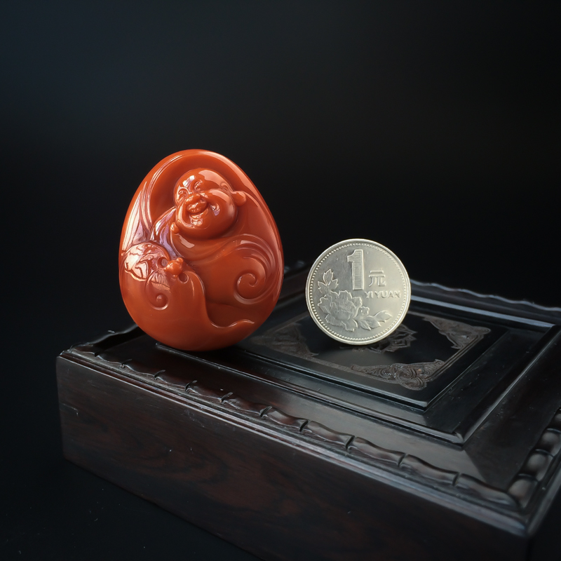 • 川料天然柿子红南红弥勒佛吊坠 - 红掌柜
