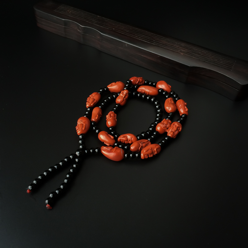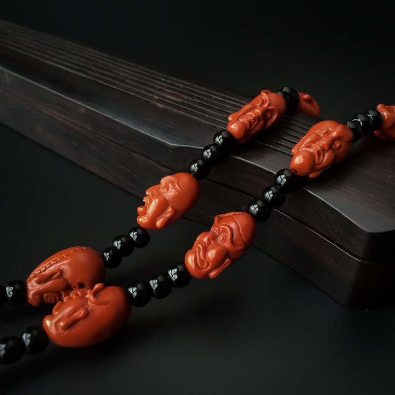 • 川料天然柿子红南红罗汉头项链-红掌柜