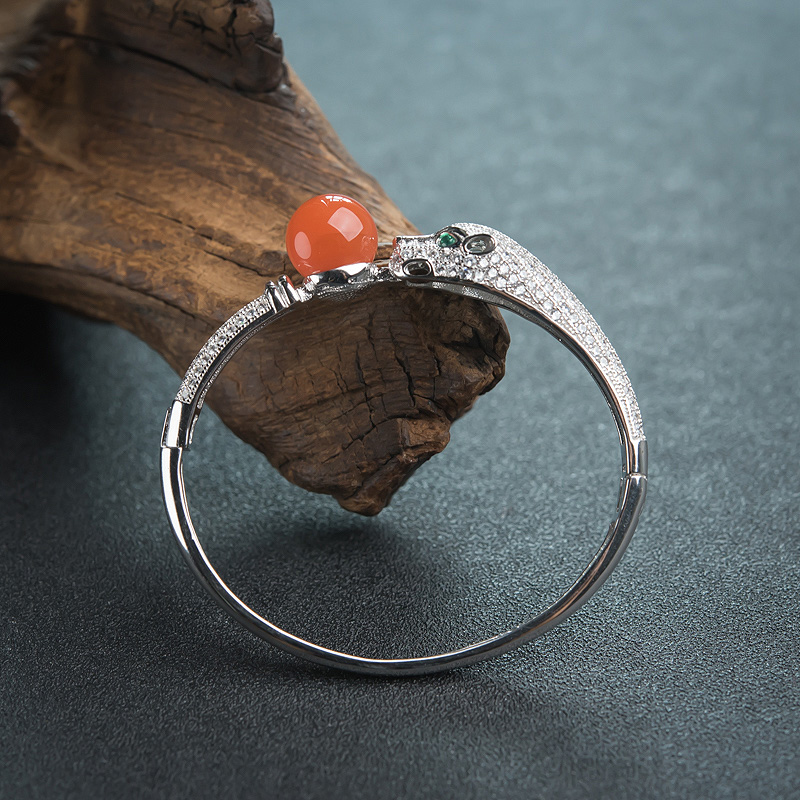 • 银镶钻川料天然南红手镯-红掌柜