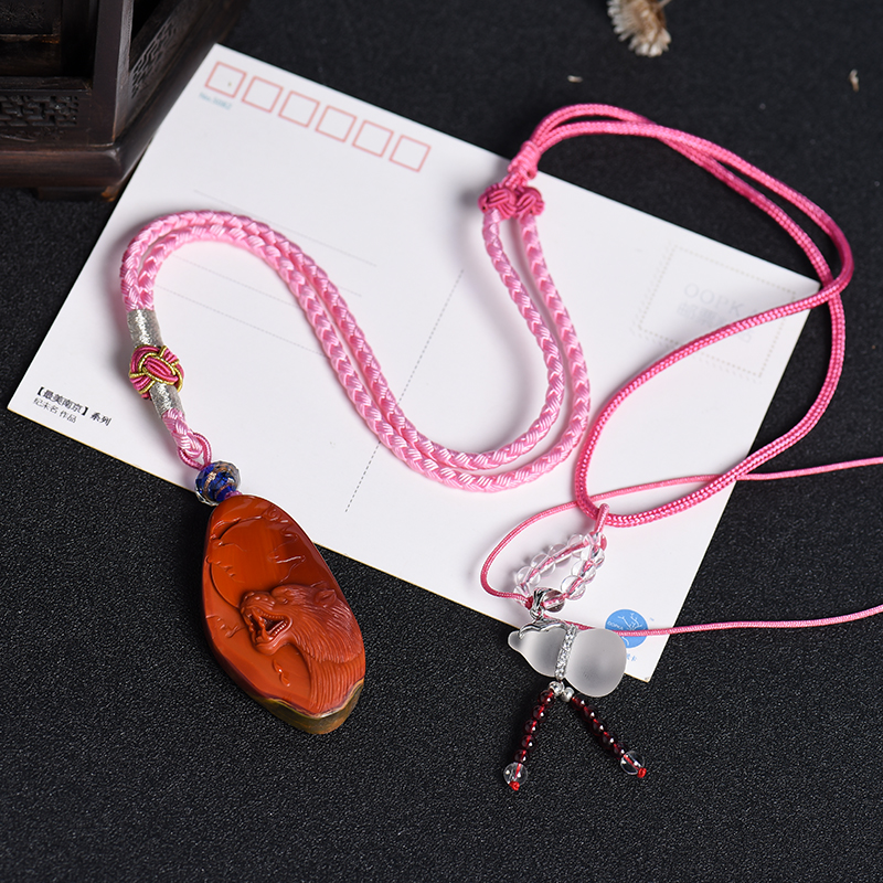 • [产品描述] 川料带皮南红吊坠,色泽浓郁,底部带皮。吊坠雕刻苍狼啸月图,在夜阑更深的夜晚,苍狼长啸嘶鸣,透着坚韧、永不屈服的霸王之气。吊坠雕工细腻、形象逼真,狼张着血盘大口、露出尖牙利齿,使人隐约间似闻其声;毛发的刻画十分细致,丝丝清晰,立体感强;玫瑰红处巧雕成乌云,半遮圆月,更衬夜之幽静。