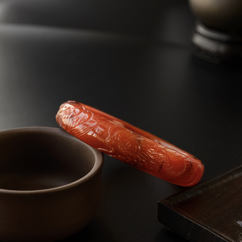 • 柿子红南红乾坤龙凤手镯-红掌柜