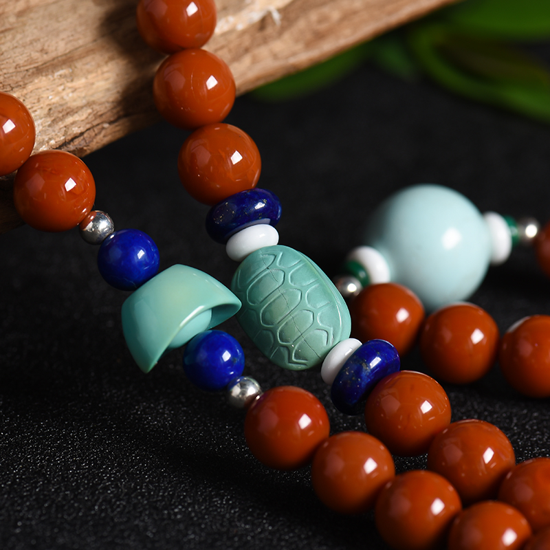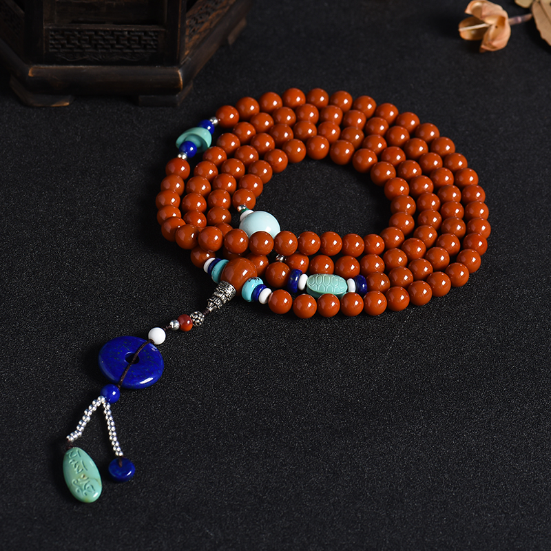 • 天然南红108佛珠项链-红掌柜