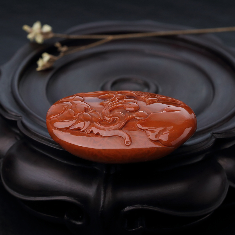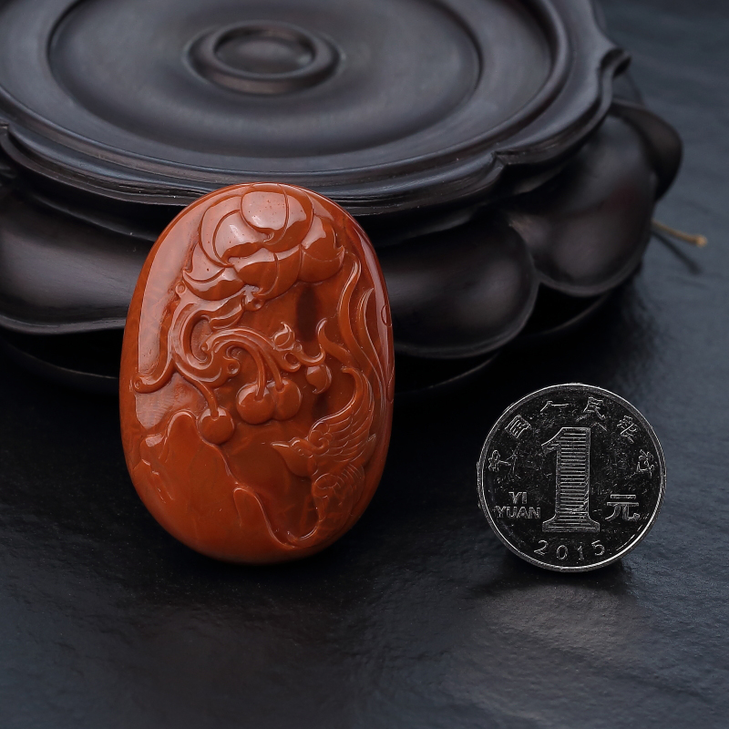 • 天然柿子红南红喜事连连吊坠-红掌柜