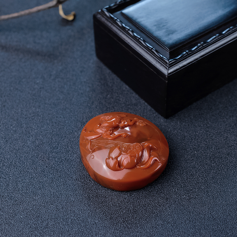 • 柿子红南红喜上眉梢吊坠-红掌柜