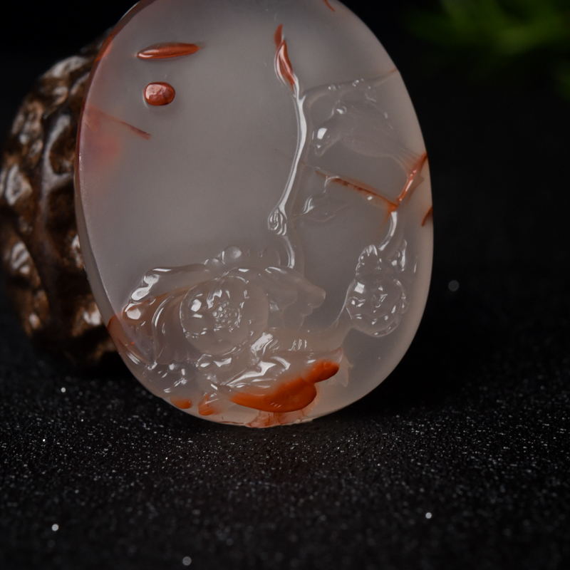 • 冰飘料南红喜上眉梢吊坠-红掌柜