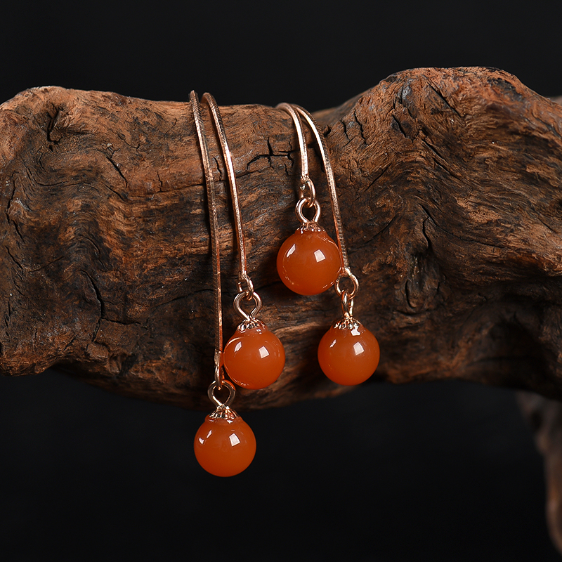 • 银镶南红耳坠-红掌柜
