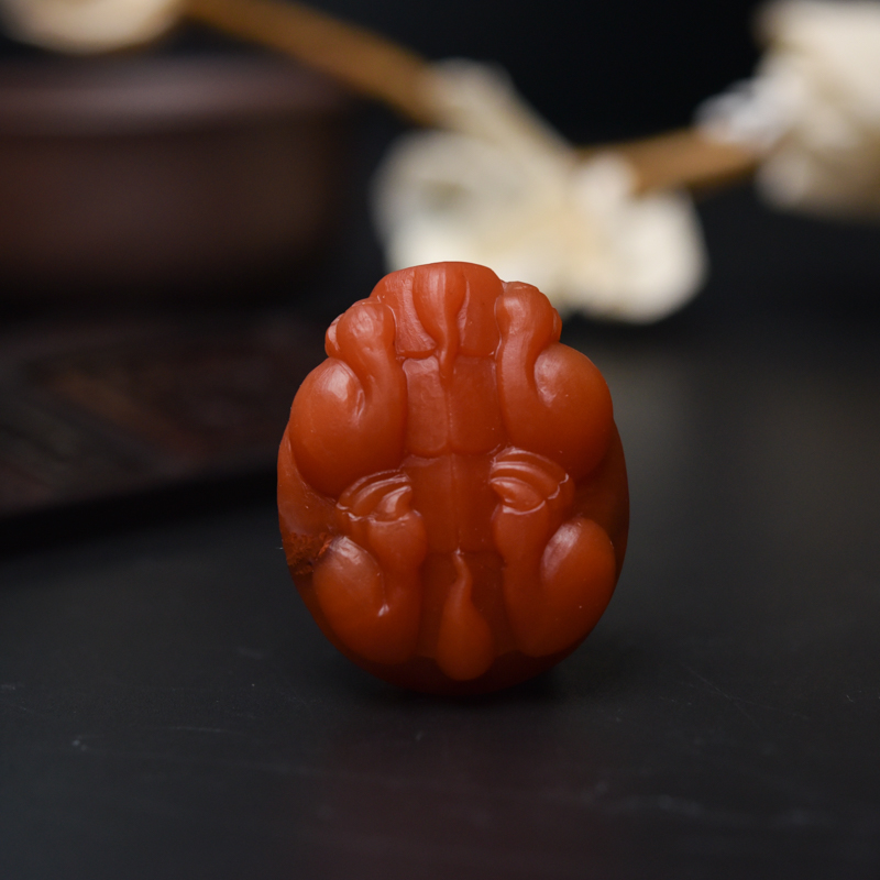 • 四川柿子红南红龙龟吊坠-红掌柜