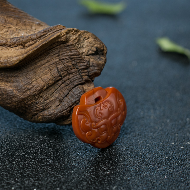 • 柿子红南红兽面吊坠-红掌柜