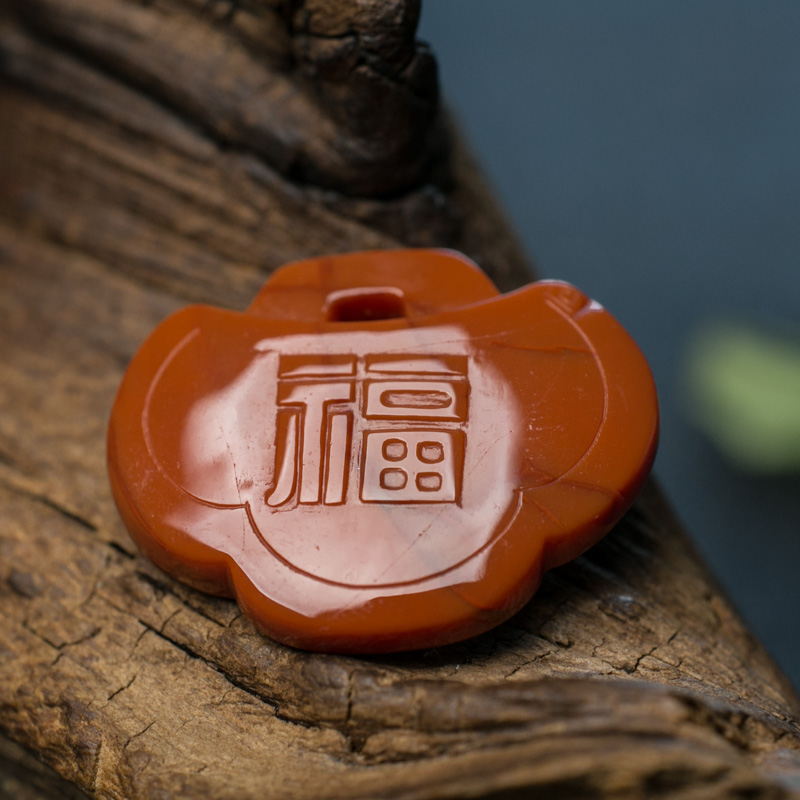 • 柿子红南红吊坠-红掌柜