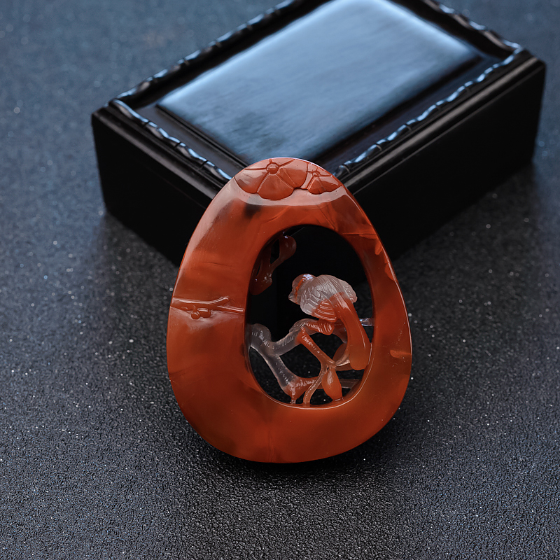 • 川料天然南红镂空喜上眉俏吊坠-红掌柜