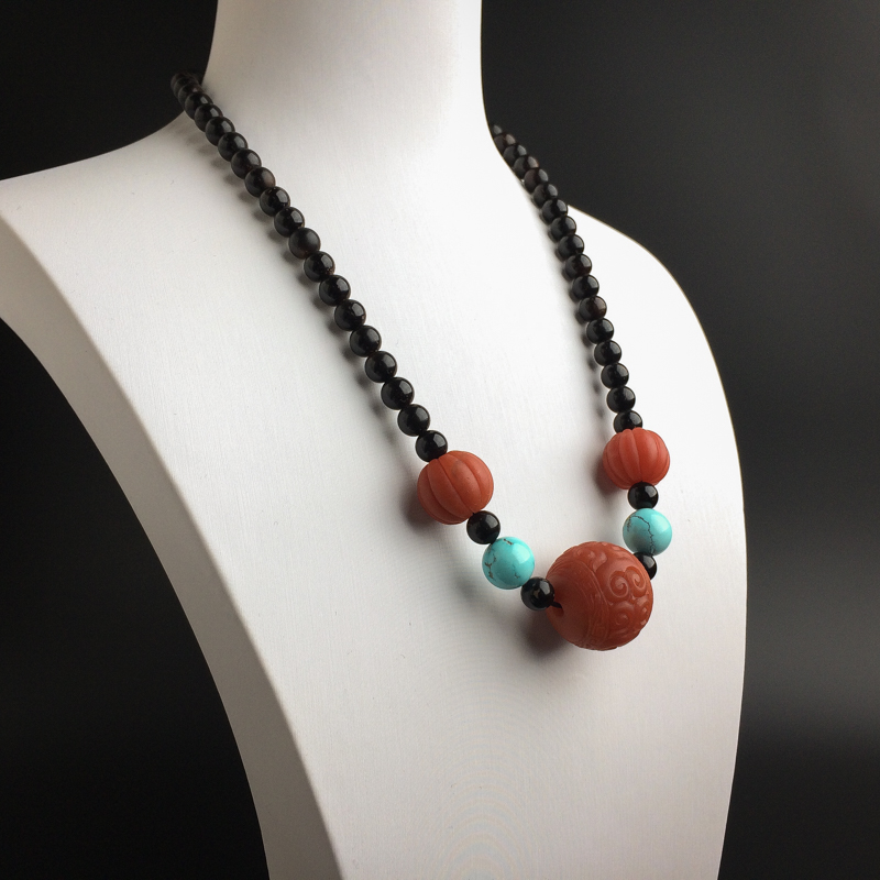 • 柿子红南红回纹珠项链
