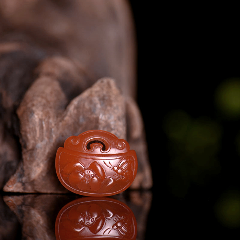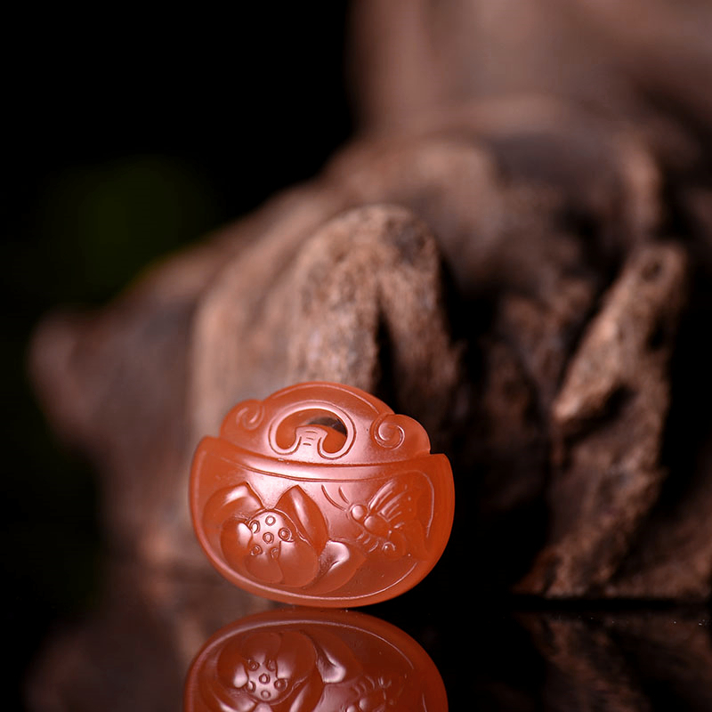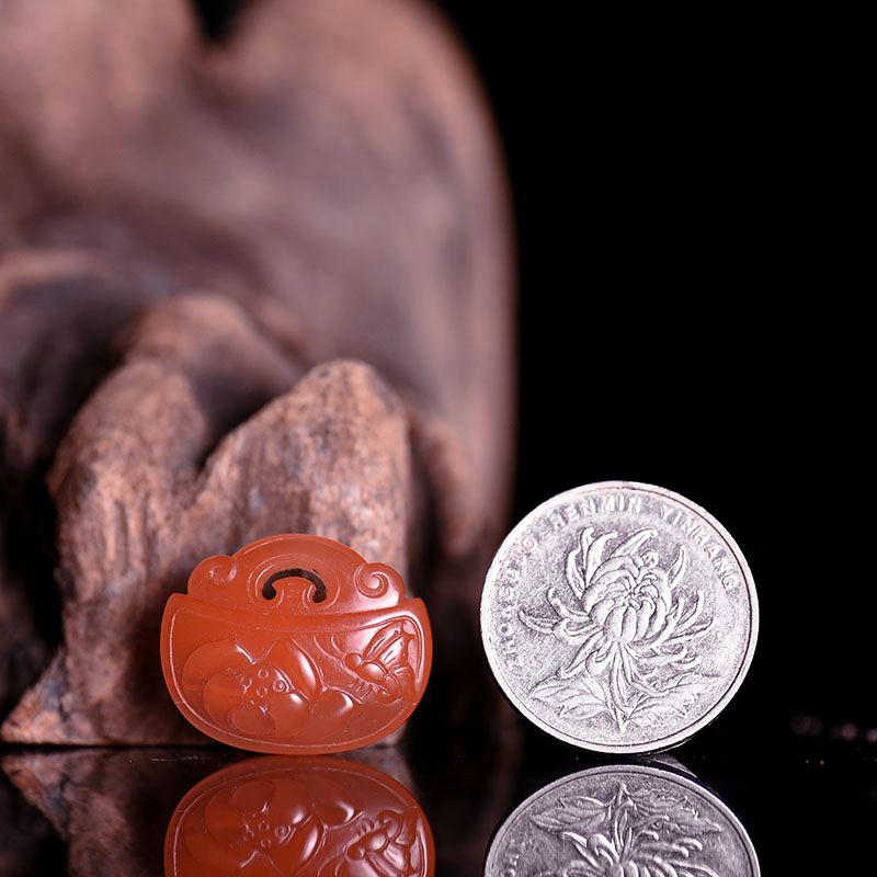 • [名  称] 樱桃红南红蝶恋花平安锁吊坠