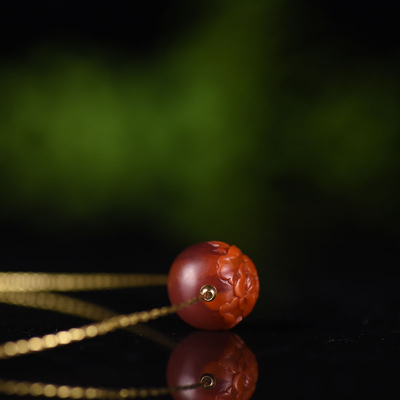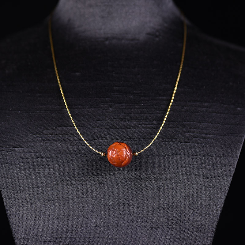 • 柿子红南红花开富贵项链