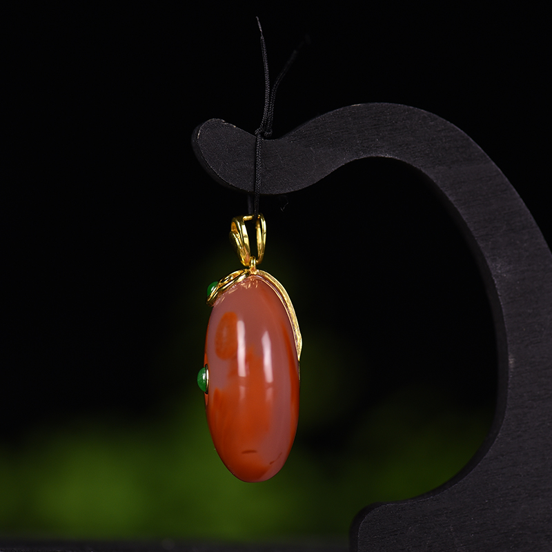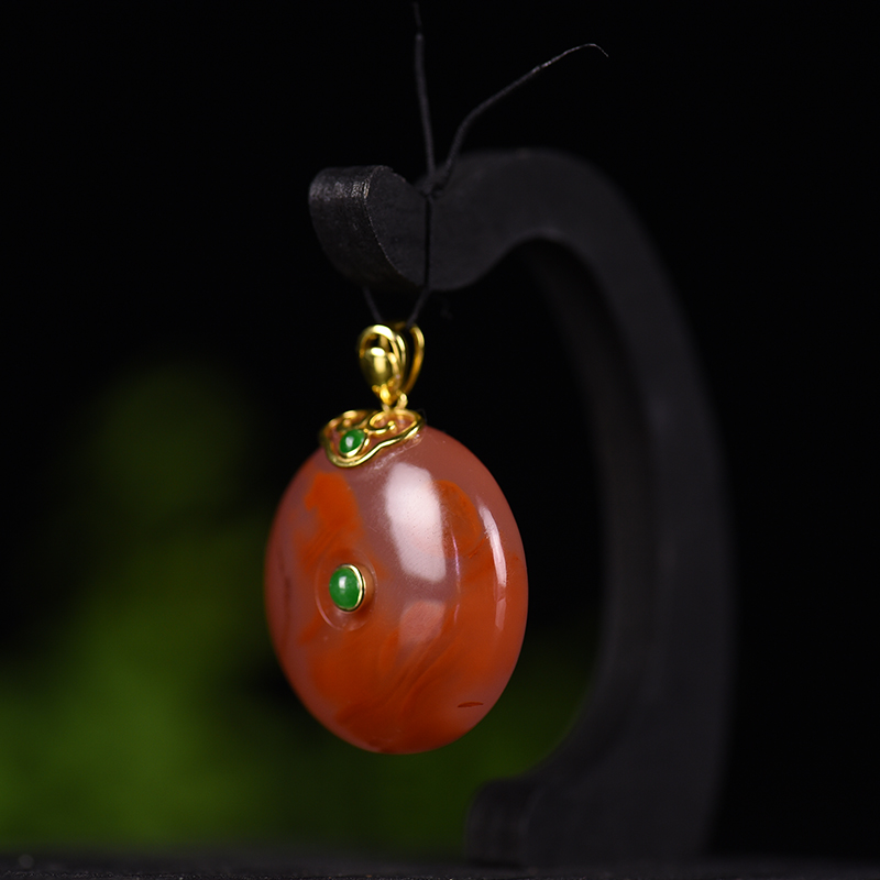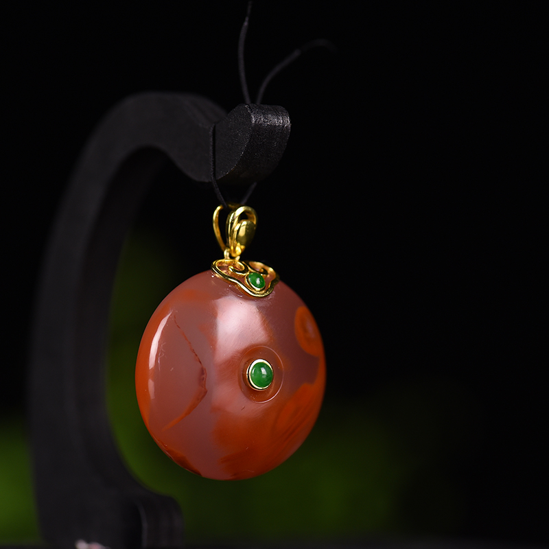 • 18k金镶冰飘柿子红南红平安扣吊坠