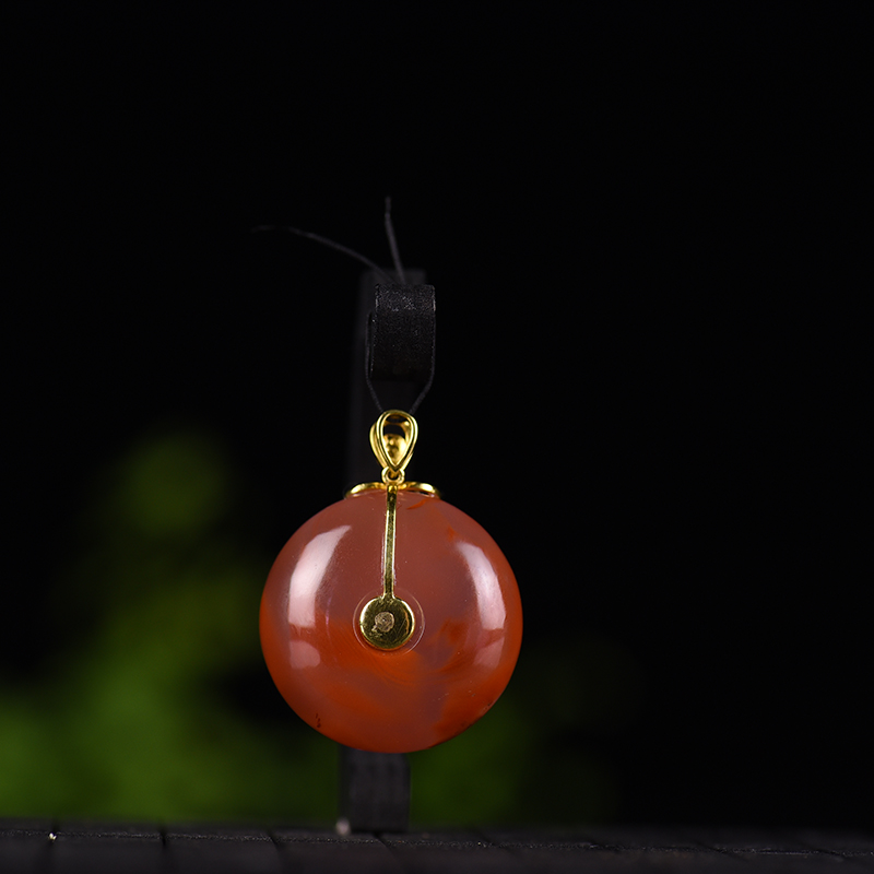 • [名  称] 18k金镶冰飘柿子红南红平安扣吊坠