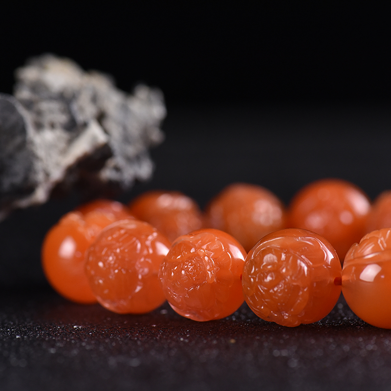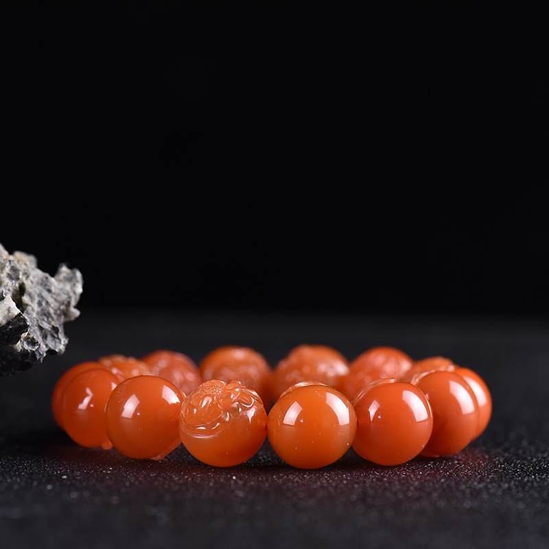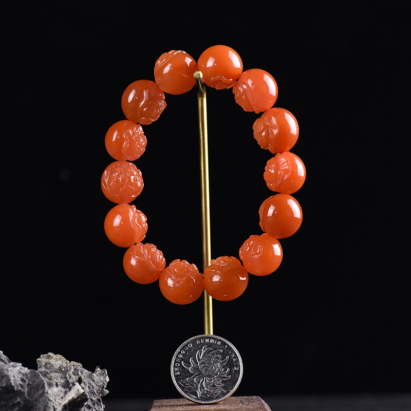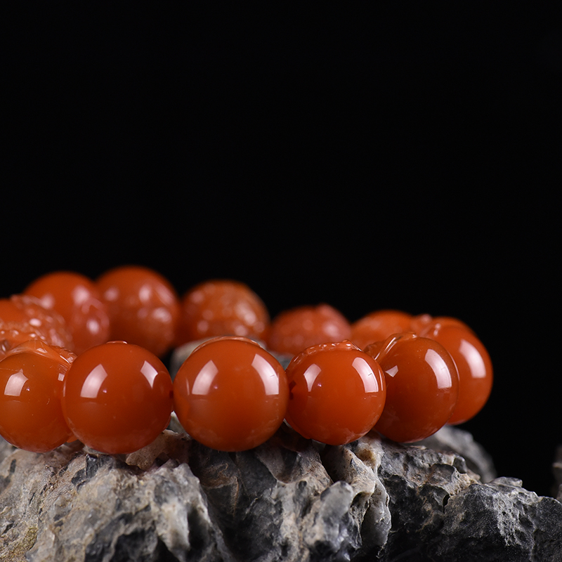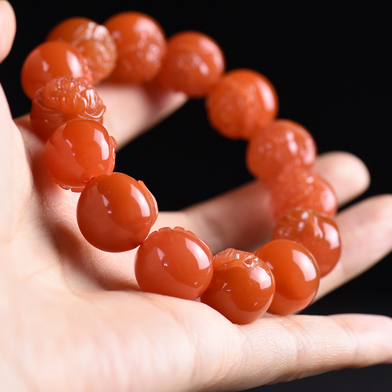 • 15.5mm樱桃红南红花开富贵单圈手串