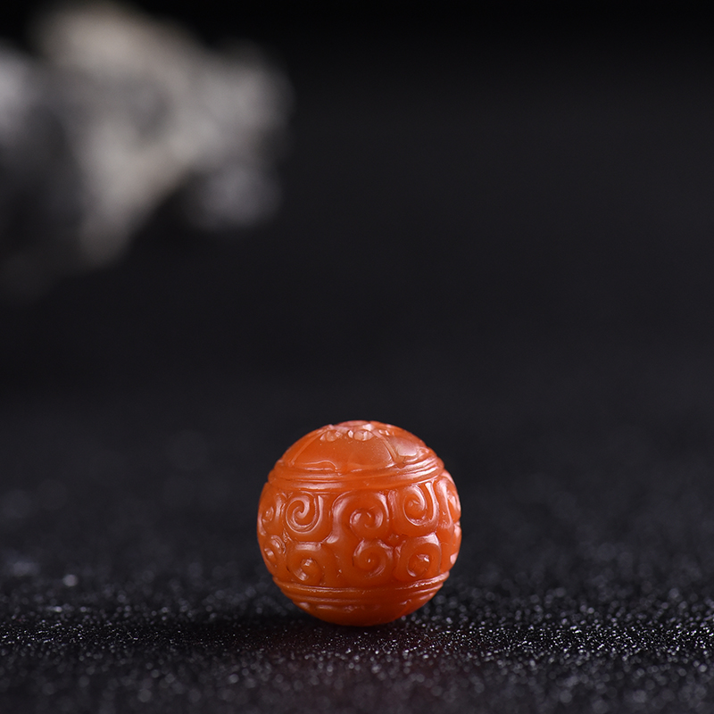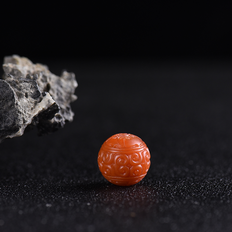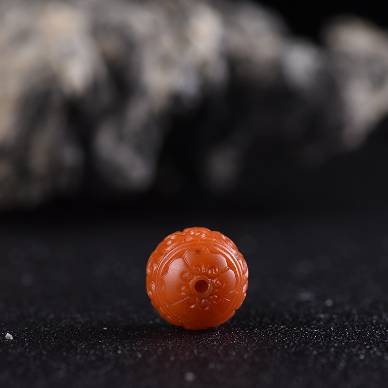 • 柿子红南红回纹珠配件