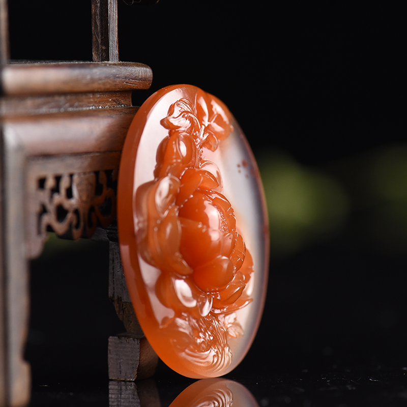 • 俏色南红花开富贵吊坠