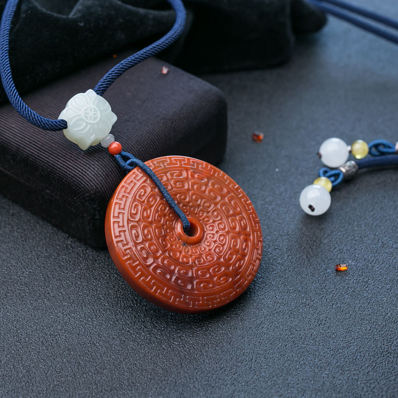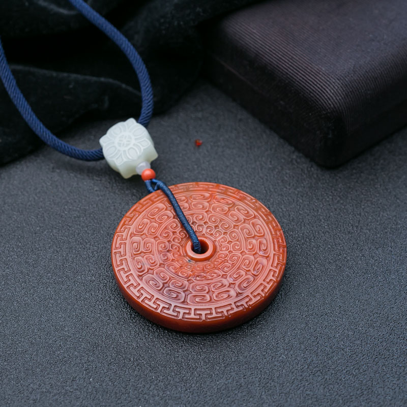 • [名  称] 柿子红南红回纹平安扣吊坠