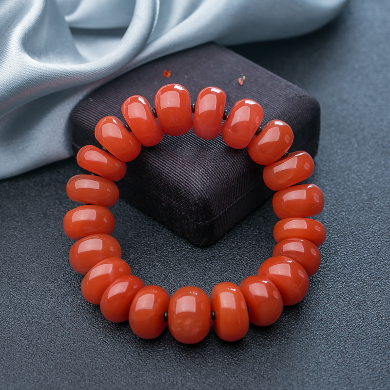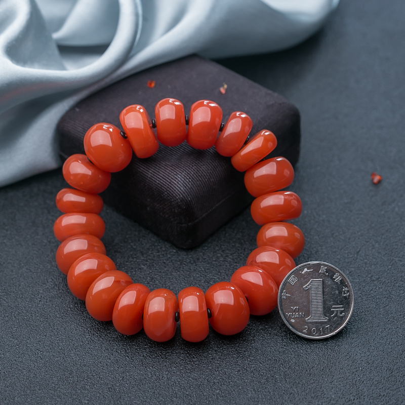 • 17mm樱桃红南红算盘珠单圈手串